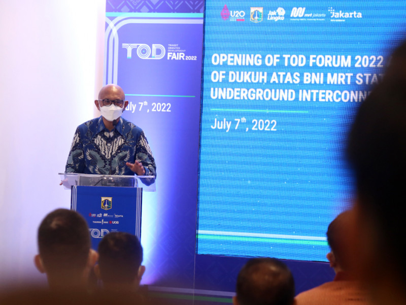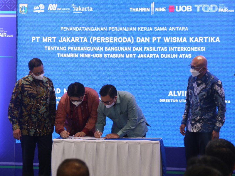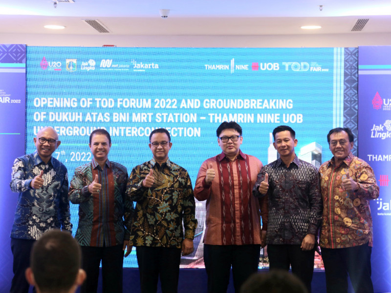 Gubernur DKI Jakarta, Anies Baswedan melakukan pencanangan pembangunan interkoneksi bawah tanah Thamrin Nine-Stasiun MRT Dukuh Atas sekaligus membuka TOD Forum 2022. Kegiatan tersebut berlangsung di Chubb Square level B1, Thamrin Nine Complex, Jakarta Pusat, Kamis (7/7). Pencanangan ini merupakan langkah Pemprov DKI Jakarta dan MRT Jakarta berkolaborasi dengan sektor privat dalam mewujudkan jaringan interkoneksi bawah tanah dan seamless urban mobility di kawasan berorientasi transit. (Foto: Reza Hapiz/beritajakarta.id)