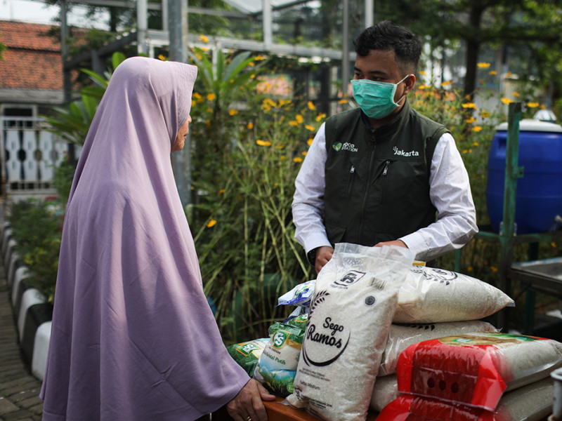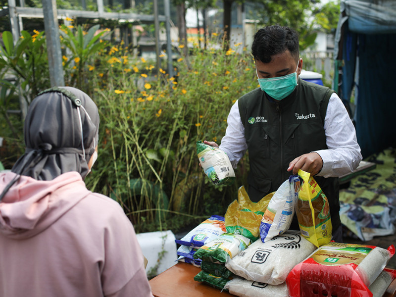 Sejumlah warga membeli bahan pokok di halaman Kantor Kelurahan Pondok Ranggon, Cipayung, Jakarta Timur, Selasa (12/7). PT Food Station Tjipinang Jaya (FSTJ) menggelar pasar murah keliling di lokasi berbeda setiap harinya. Pasar murah diadakan mulai tanggal 4 sampai 29 Juli 2022. (Foto: Nugroho Sejati/beritajakarta.id)
