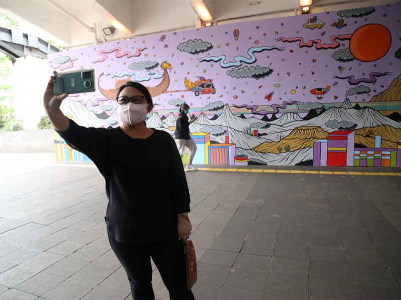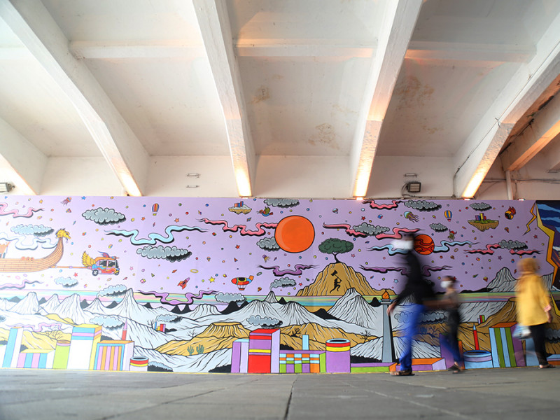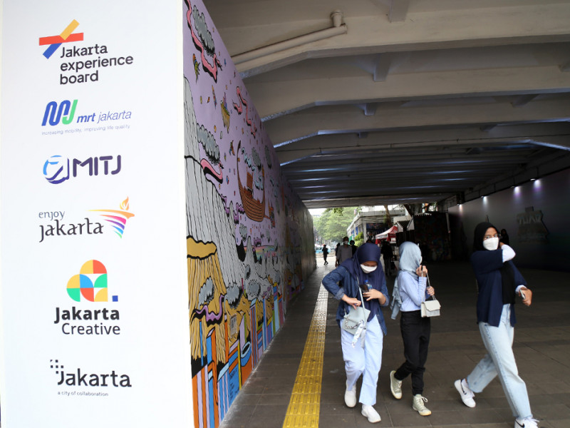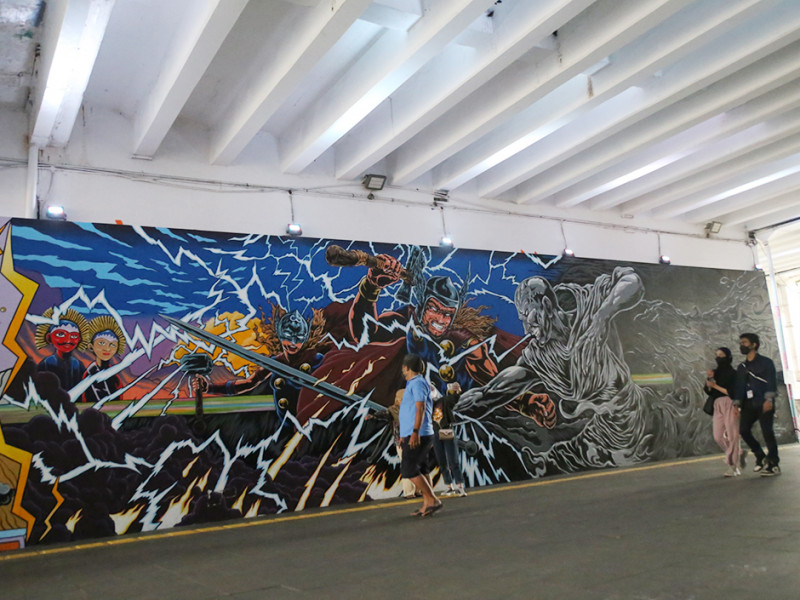 Pemerintah Provinsi (Pemprov) DKI Jakarta melalui Dinas Pariwisata dan Ekonomi Kreatif (Parekraf) dan PT Jakarta Tourisindo/Jakarta Experience Board (JXB) berkolaborasi dengan Disney Indonesia menghadirkan karya seni Augmented Reality Mural di Terowongan Kendal, Jakarta Pusat. Tema yang diusung pada mural karya seniman lokal ini terbilang cukup unik, yakni menggabungkan momen dalam film Thor dengan ikon Jakarta. (Foto: Mochamad Tresna Suheryanto/beritajakarta.id)
