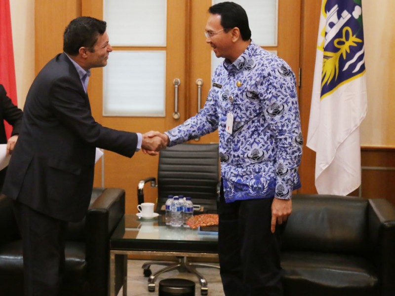 Gubernur DKI Jakarta, Basuki Tjahaja Purnama menerima wawancara Budayawan Yordania Qomar Al-Armouthy di Balaikota DKI Jakarta, Senin (27/04/2015). Kunjungan Qomar Al-Armouthy dilakukan dalam rangka penulisan buku figure pemimpin Indonesia. (Foto: Reza / Beritajakarta.com)