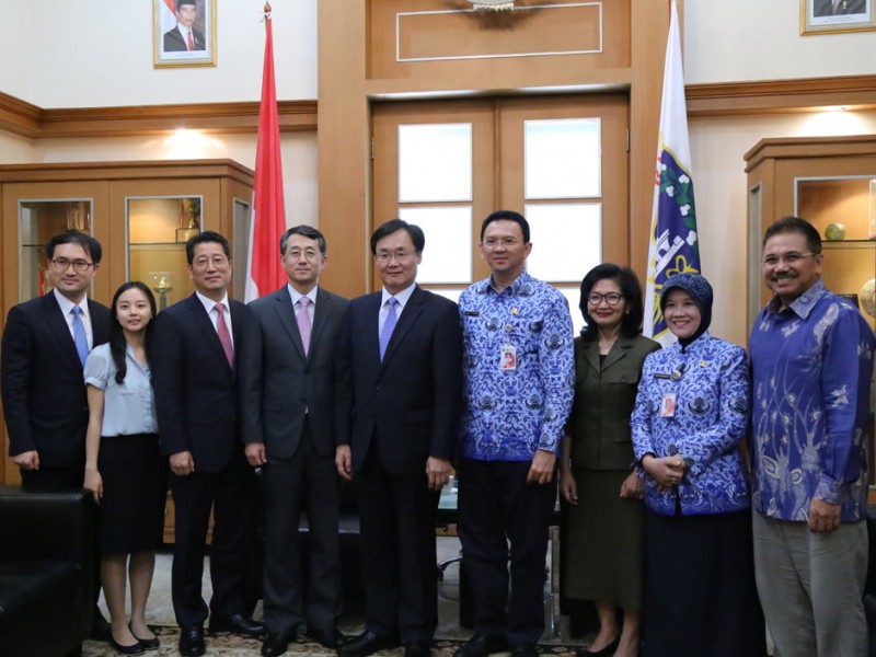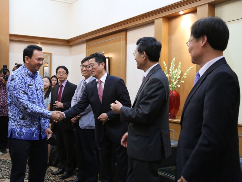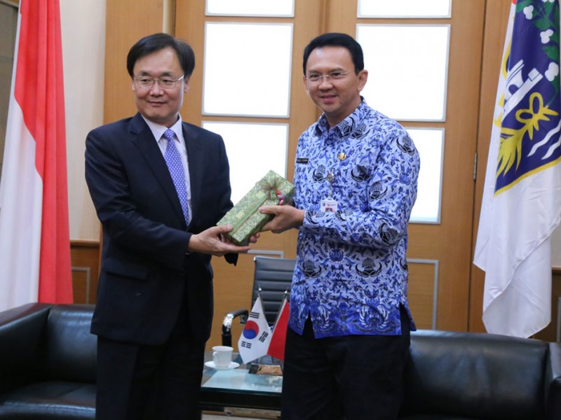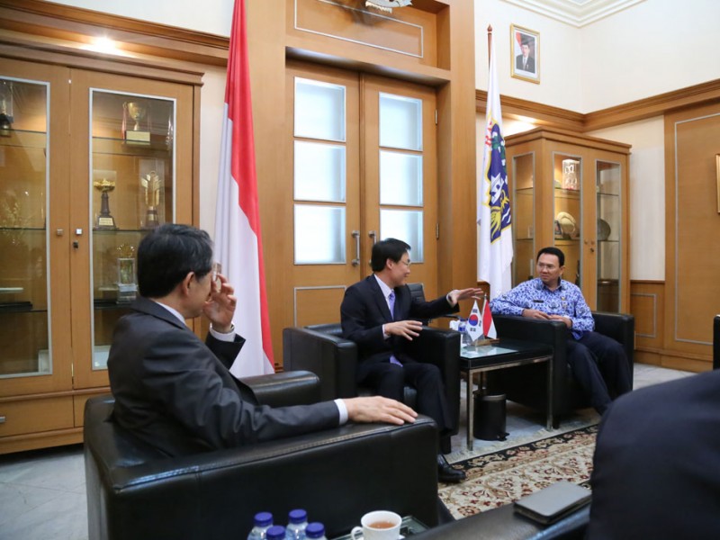 Gubernur DKI Jakarta, Basuki Tjahaja Purnama menerima kunjungan Duta Besar Korea Selatan (Dubes Korsel) dan delegasi Gubernur Provinsi Gyeonggi di Balaikota DKI Jakarta, Senin (27/04/2015). Dalam pertemuan tersebut dilakukan pembahasan terkait kerjasama sister city antara Provinsi DKI Jakarta dengan Provinsi Gyeonggi serta proyek National Capital Integrated Coastal Development (NCICD). (Foto: Yopie/Beritajakarta.com)