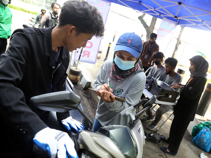 Suku Dinas Lingkungan Hidup (Sudin LH) Jakarta Selatan berkolaborasi dengan PT Enviro Buana Cipta menggelar uji emisi kendaraan bermotor di Taman Mataram, Jalan Sisingamangaraja, Kelurahan Selong, Kebayoran Baru, Kamis (14/7). Uji emisi ini merupakan salah satu upaya untuk meningkatkan kualitas udara di Jakarta. (Foto: Reza Hapiz/beritajakarta.id)