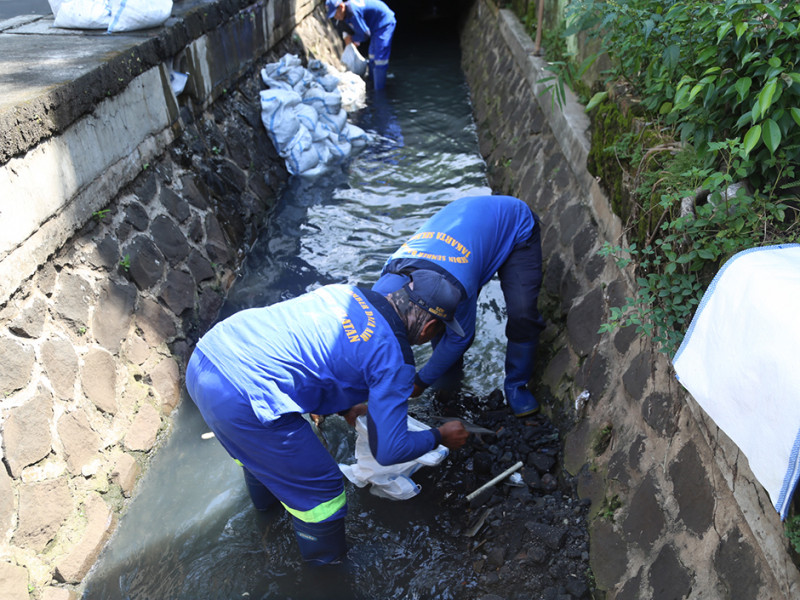 Satuan Pelaksana Sumber Daya Air (Satpel SDA) Kecamatan Kebayoran Baru, Jakarta Selatan, melakukan normalisasi Saluran Penghubung (Phb) Asem di Jalan Darmawangsa X, Kelurahan Pulo. Pengurasan dilakukan sepanjang 250 meter dengan kedalaman pengerukan 30 sentimeter. (Foto: Reza Hapiz/beritajakarta.id)