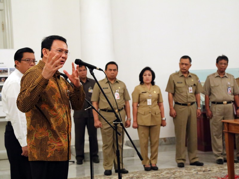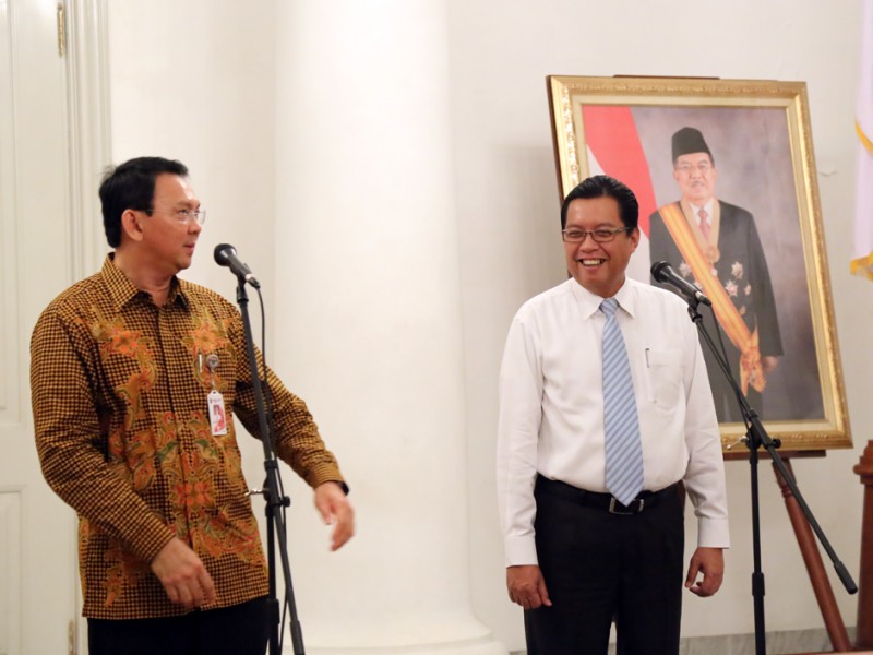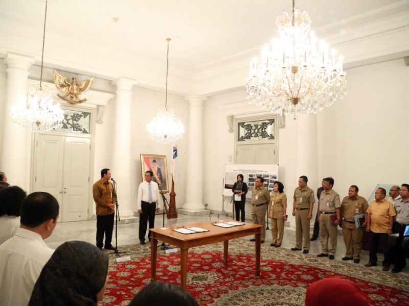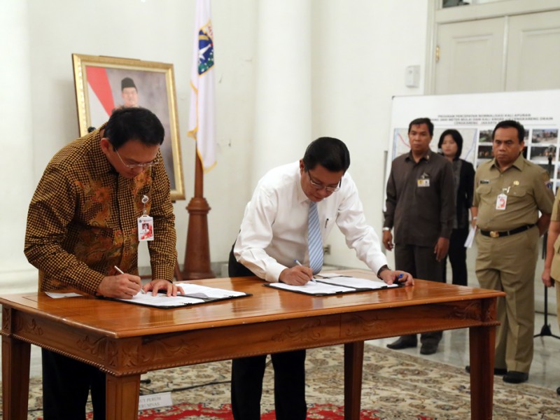 Gubernur DKI Jakarta, Basuki Tjahaja Purnama menandatangani Memorandum of Understanding (MoU) dengan Direktur Utama Perum Perumnas, Himawan Arief Sugoto di Balaikota DKI Jakarta, Selasa (28/04/2015). Penandatanganan MoU terkait pembangunan Rumah Susun (Rusun) di Jakarta. (Foto : Yopie/Beritajakarta.com)