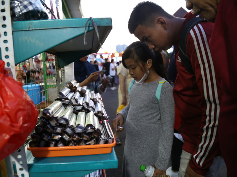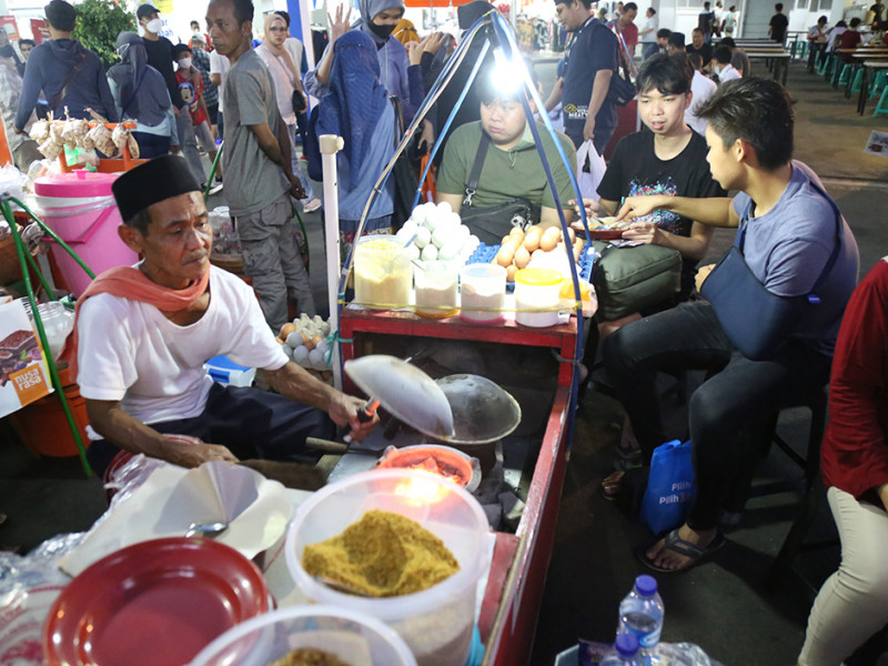 Bosan sama makanan kekinian? Nyok, merapat ke Kampu ng Betawi di Gambir Expo dekat Pintu masuk F, Jakarta International Expo (JIExpo), Kemayoran, Jakarta Pusat. Beragam kuliner khas Jakarta ada di sini, mulai dari soto dan dodol Betawi, kerak telor, hingga bir pletok. Harganya pun ramah di kantong, yakni kisaran puluhan ribu rupiah. (Foto: Mochamad Tresna Suheryanto/beritajakarta.id)