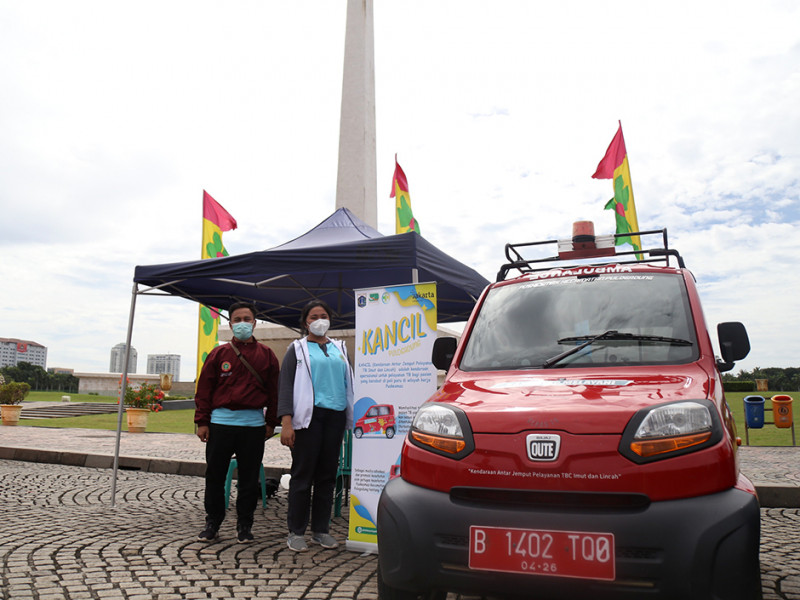 Dinas Kesehatan (Dinkes) DKI Jakarta melalui Puskesmas Kecamatan Pulo Gadung menampilkan armada Kancil (Kendaraan Antar Jemput Pelayanan TBC Imut dan Lincah) dalam pameran sarana dan atraksi Organisasi Perangkat Daerah (OPD) di Lapangan Plaza Selatan Monumen Nasional, Jakarta Pusat, Sabtu (16/7). Kancil merupakan sebuah inovasi dari Puskesmas Kecamatan Pulo Gadung dalam memberikan pelayanaan kepada pasien Tuberkulosis (TBC) di wilayahnya. (Foto: Mochamad Tresna Suheryanto/beritajakarta.id)