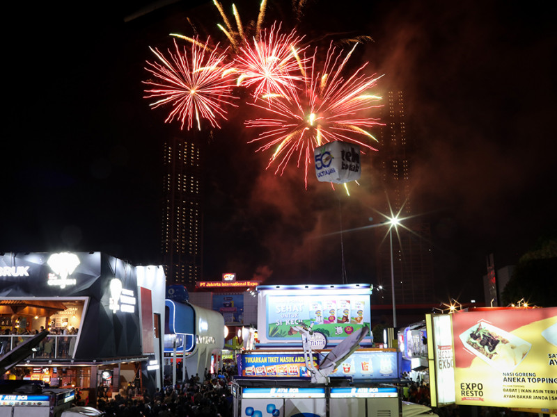 Wakil Gubernur DKI Jakarta, Ahmad Riza Patria, menutup pelaksanaan Jakarta Fair 2022 di JIExpo, Kemayoran, Minggu (17/7). Seremonial penutupan Jakarta Fair 2022 ditandai dengan pesta kembang api. Ariza yang hadir mewakili Gubernur DKI Jakarta, Anies Baswedan menyampaikan apresiasi dan selamat kepada segenap panitia serta jajaran JIExpo, atas kesuksesan Pekan Raya Jakarta (PRJ) atau Jakarta Fair yang diadakan sejak 9 Juni 2022 sampai hari ini, setelah sebelumnya sempat tertunda selama dua tahun akibat pandemi COVID-19. (Foto: Nugroho Sejati/beritajakarta.id)