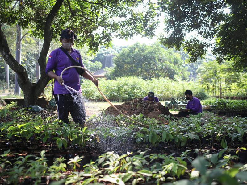 Petugas melakukan budi daya bibit pohon alpukat di Agro Edukasi Wisata (AEW) Cibubur, Kecamatan Ciracas, Jakarta Timur, Selasa (19/7). AEW Cibubur yang berada di bawah naungan Pusat Pengembangan Benih dan Proteksi Dinas KPKP DKI Jakarta membudidayakan berbagai macam bibit tanaman, salah satunya bibit pohon alpukat Cipedak. Bagi warga yang memiliki KTP dan KK DKI Jakarta bisa mendapatkan bibit secara gratis dengan mendaftar melalui website openstreetmap.id/dkpkp. (Foto: Nugroho Sejati/beritajakarta.id)