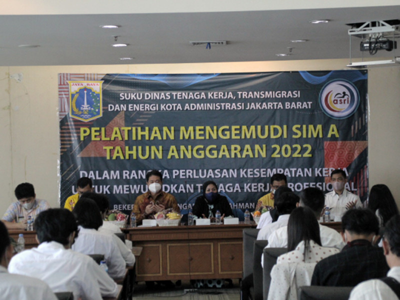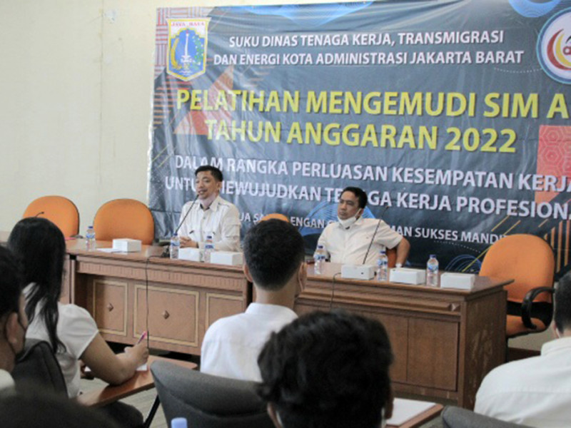 Sebanyak 100 peserta mengikuti pelatihan mengemudi kendaraan roda empat yang diadakan oleh Suku Dinas Tenaga Kerja, Transmigrasi, dan Energi (Sudin Nakertransgi) Jakarta Barat di Ruang Soewiryo 1, Blok B Gedung Wali Kota Jakarta Barat, Kamis (21/7). Pelatihan berlangsung selama 12 hari kerja, yakni dua hari untuk materi teori dan 10 hari untuk praktik. Usai menjalani pelatihan, para peserta akan mendapatkan SIM A dan sertifikat. (Foto: Reza Hapiz/beritajakarta.id)