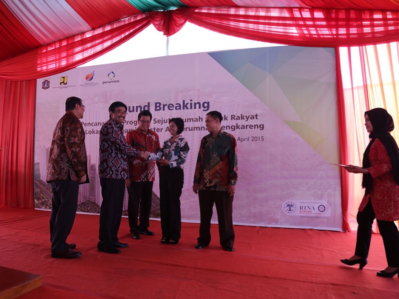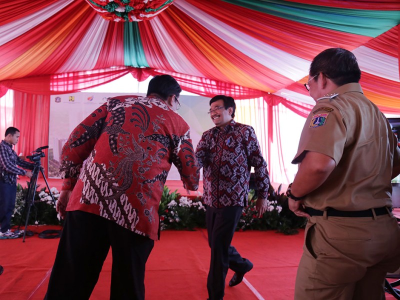 Wakil Gubernur DKI Jakarta, Djarot Saiful Hidayat melakukan telekonferensi dengan Presiden Republik Indonesia Joko Widodo (Jokowi), Rabu (29/04/2015). Telekonferensi dilakukan Djarot dari area pembangunan Rumah Susun Sederhana Milik (Rusunami) di Kelurahan Cengkareng Timur, Kecamatan Cengkareng, Jakarta Barat, sementara Presiden RI Jokowi berada di Ungaran, Provinsi Jawa Tengah. (Foto: Reza/beritajakarta.com)