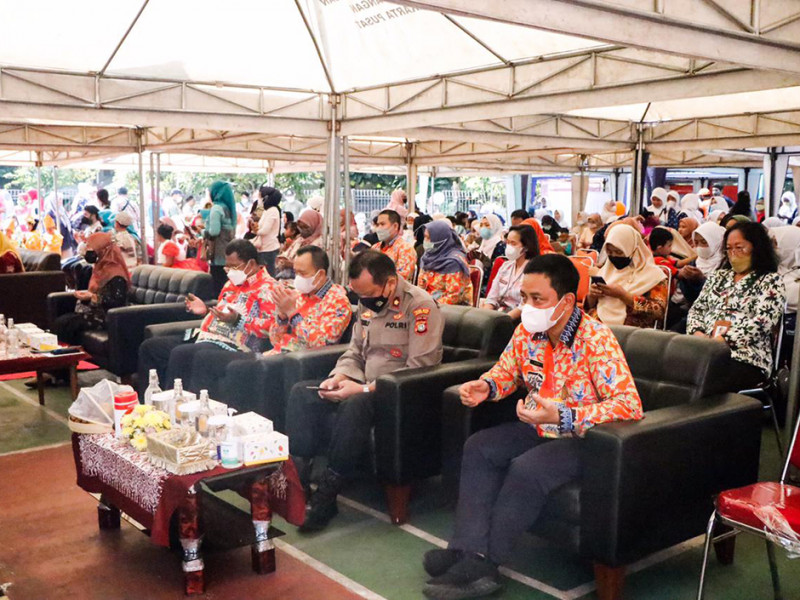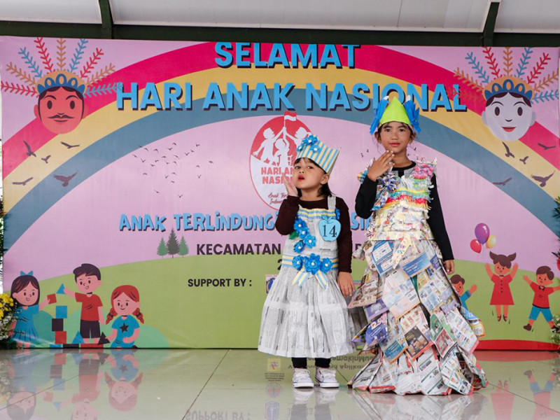 Bunda Pendidikan Anak Usia Dini (PAUD) Kecamatan Cempaka Putih, Jakarta Pusat menggelar peragaan busana (fashion show) berbahan daur ulang di Ruang Publik Terpadu Ramah Anak (RPTRA) Matahari, Kelurahan Cempaka Putih Timur, Kamis (21/7). Kegiatan bertajuk \"Anak Terlindungi, Indonesia Maju\" ini dalam rangka memperingati Hari Anak Nasional yang jatuh pada 23 Juli mendatang. (Foto: Mochamad Tresna Suheryanto/beritajakarta.id)