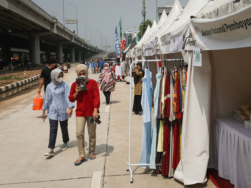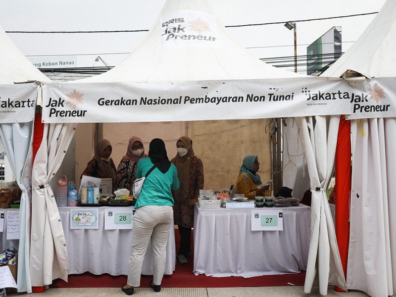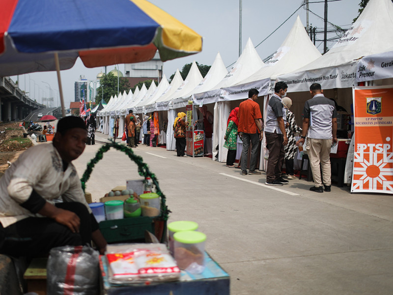 Sebanyak 62 Jakpreneur mengikuti Bazar Usaha Kecil Menengah (UKM) di depan Kantor Kecamatan Jatinegara. Bazar yang berlangsung pada 21-22 Juli 2022 ini menampilkan berbagai produk unggulan mulai dari kuliner, minuman, kerajinan tangan dan fesyen. (Foto: Nugroho Sejati/beritajakarta.id)