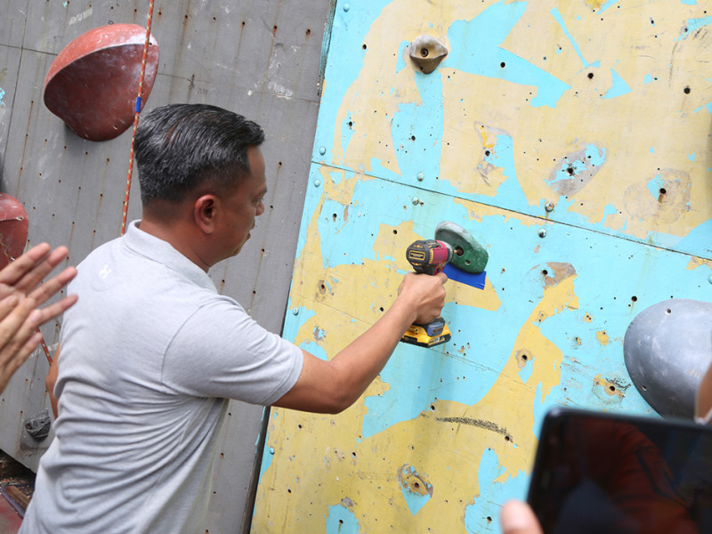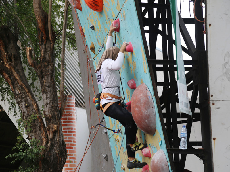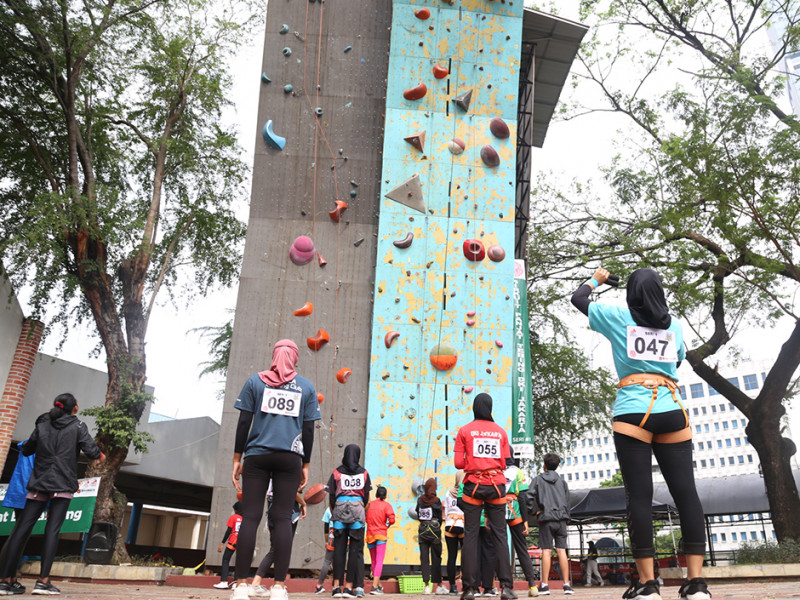 Sebanyak 90 peserta dari berbagai klub panjang tebing se-Jakarta berkompetisi dalam Sirkuit Panjat Tebing DKI Jakarta Seri 1 yang diinisiasi oleh Federasi Panjat Tebing Indonesia (FPTI) Jakarta Selatan. Perlombaan ini dibuka langsung oleh Wali Kota Jakarta Selatan, Munjirin di Gelanggang Olah Raga (GOR) Soemantri Brodjonegoro, Kuningan, Jumat (22/7). (Foto: Reza Hapiz/beritajakarta.id)