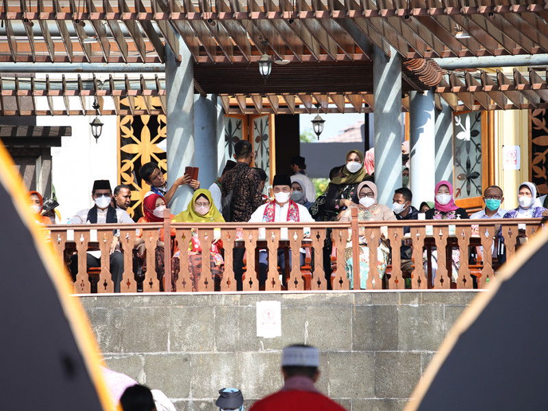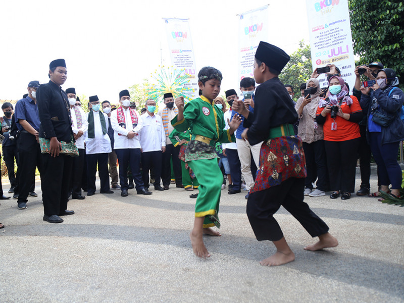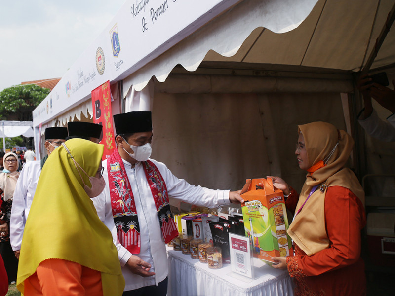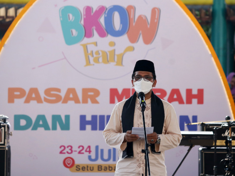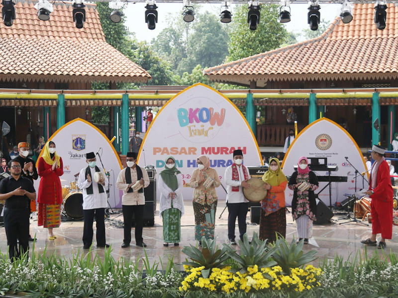 Wakil Gubernur DKI Jakarta, Ahmad Riza Patria membuka pelaksanaan Badan Kerjasama Organisasi Wanita (BKOW) Fair dan peringatan Hari Anak Nasional (HAN) di Perkampungan Budaya Betawi Setu Babakan, Jagakarsa, Jakarta Selatan, Sabtu (23/7). Kegiatan bertajuk “Kembali Bangkit Bersama Lebih Kuat dan Sejahtera Pasca Pandemi COVID-19” ini dimeriahkan beragam hiburan menarik mulai dari atraksi seni budaya, lomba untuk anak-anak hingga pasar murah. (Foto: Mochamad Tresna suheryanto/beritajakarta.id)
