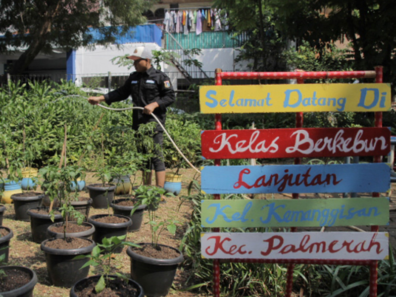 Puluhan warga Kelurahan Kemanggisan mengikuti kelas berkebun di RPTRA Manggis, Jalan Anggrek Rosliana II, Kecamatan Palmerah, Jakarta Barat. Kelas berkebun ini merupakan program unggulan Pokja 3 PKK Kemanggisan dengan pendampingan Satuan Pelaksana Ketahanan Pangan, Kelautan, dan Pertanian (Satpel KPKP) Kecamatan Palmerah. (Foto: Reza Hapiz/beritajakarta.id)