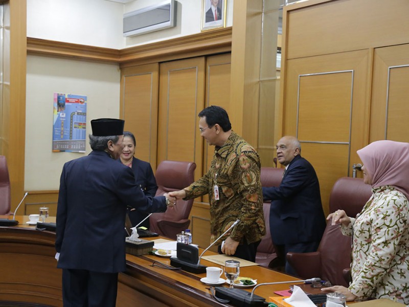 Gubernur DKI Jakarta, Basuki Tjahaja Purnama menerima Dewan Riset Daerah (DRD) Provinsi DKI Jakarta di Balaikota DKI Jakarta, Kamis ( 30/04/2015). Dalam kesempatan tersebut Dewan Riset Daerah Provinsi DKI Jakarta menyampaikan laporan kegiatan tahun 2014 dan rencana kegiatan tahun 2016 mendatang. (Foto: Reza/beritajakarta.com)
