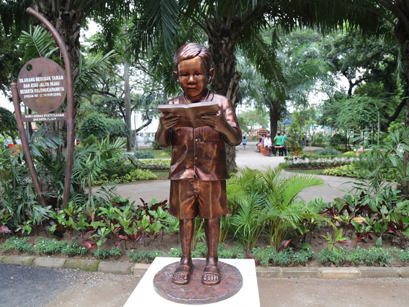 Pemerintah Provinsi (Pemprov) DKI Jakarta terus memperbaiki dan merawat taman-taman yang ada. Hal ini sebagaimana Taman Amir Hamzah yang berlokasi di Kelurahan Pegangsaan, Kecamatan Menteng, Jakarta Pusat. Bahkan beberapa waktu lalu, Taman Amir Hamzah dilengkapi dengan patung Gus Dur semasa kecil yang juga kerap bermain di taman ini. (Foto : Reza/Beritajakarta.com)