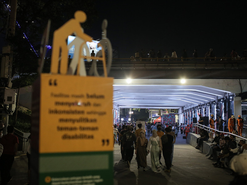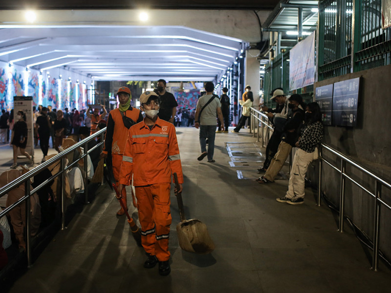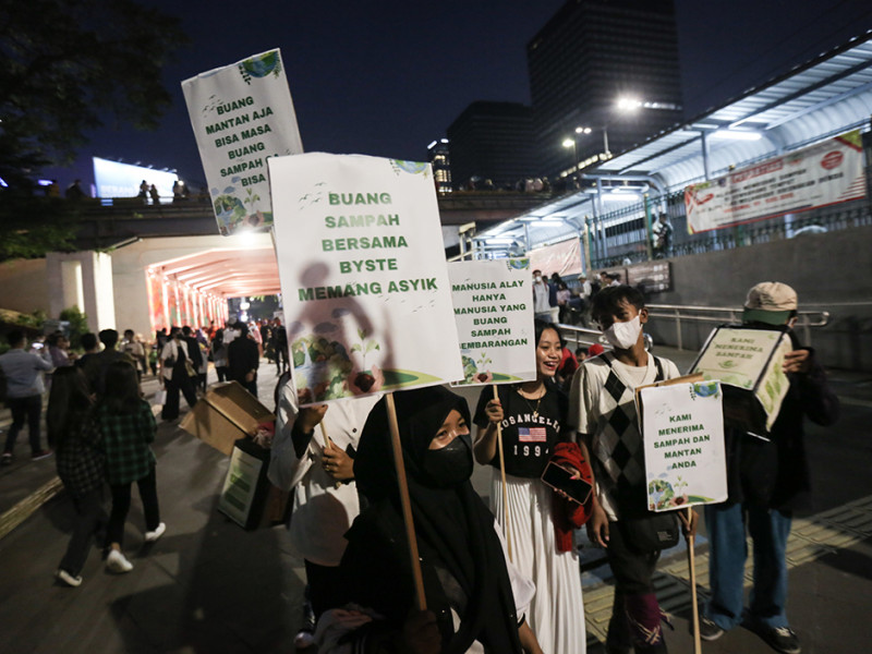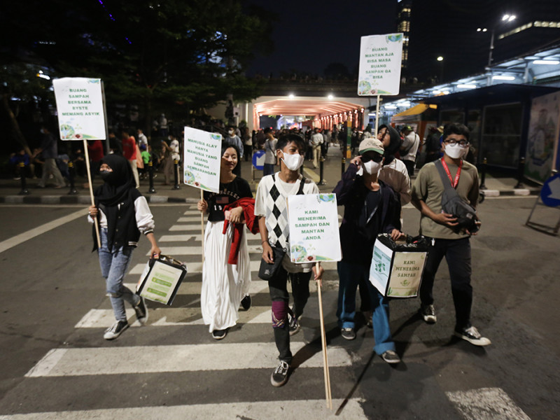 Dinas Lingkungkan Hidup (LH) DKI Jakarta berkolaborasi dengan Byste melakukan kampanye peduli lingkungkan di kawasan transit oriented development (TOD) Dukuh Atas, Menteng, Jakarta Pusat, Sabtu (30/7). Kampanye tersebut bertujuan mengajak warga untuk tidak buang sampah sembarangan dan bertanggung jawab terhadap lingkungan. (Foto: Nugroho Sejati/beritajakarta.id)
