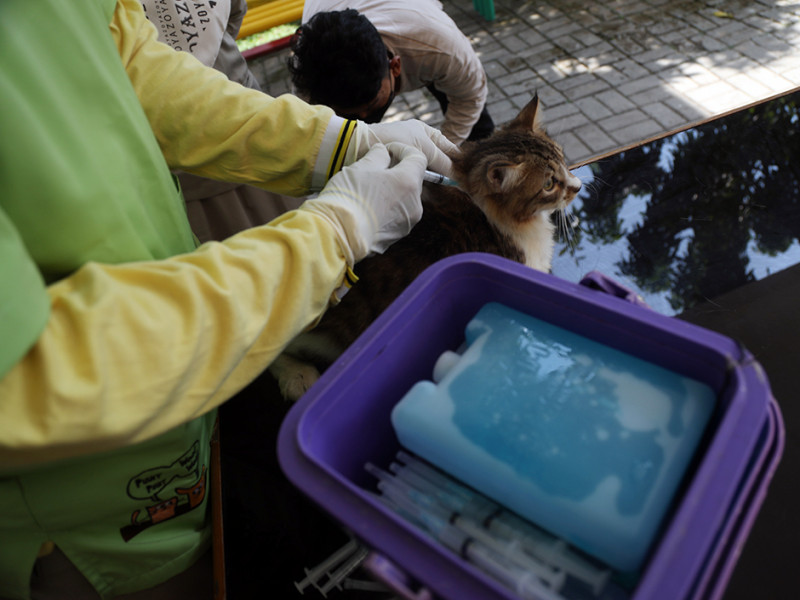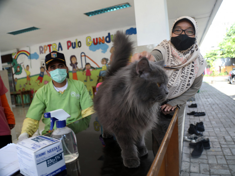 Suku Dinas Ketahanan Pangan, Kelautan dan Pertanian (Sudin KPKP) Jakarta Pusat membuka layanan vaksinasi bagi hewan penular rabies (HPR) di Ruang Publik Terpadu Ramah Anak (RPTRA) Pulo Gundul, Jalan Pulo Gundul Nomor 5, Kelurahan Tanah Tinggi, Johar Baru, Senin (1/8). Pada kegiatan kali ini, tercatat ada 11 ekor kucing milik warga yang telah divaksin rabies. (Foto: Mochamad Tresna Suheryanto/beritajakarta.id)