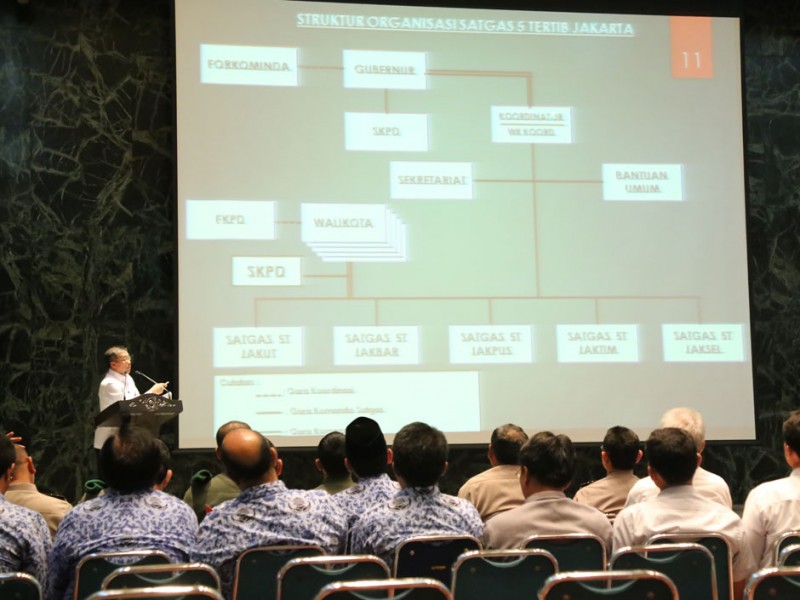 Gubernur DKI Jakarta, Basuki Tjahaja Purnama memberikan arahan dalam rapat Pokja Percepatan 5 Tertib di Balaikota DKI Jakarta, Senin (04/05/2015). Program 5 Tertib, yakni Tertib PKL, Tertib Sampah, Tertib Hunian, Tertib Berlalu Lintas, dan Tertib Demonstrasi menjadi dedicated program Basuki Tjahaja Purnama untuk mewujudkan Jakarta yang maju dan manusiawi.(Foto: Yopie/Beritajakarta.com)