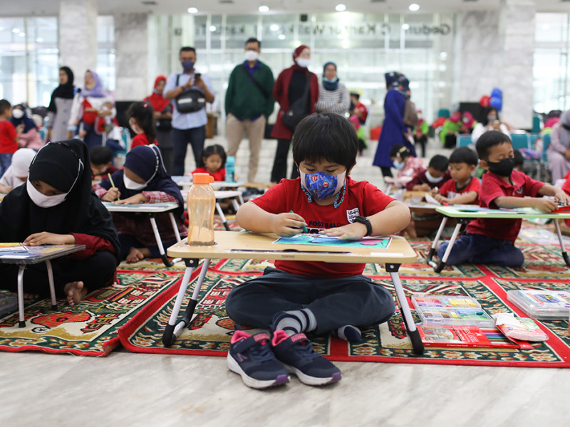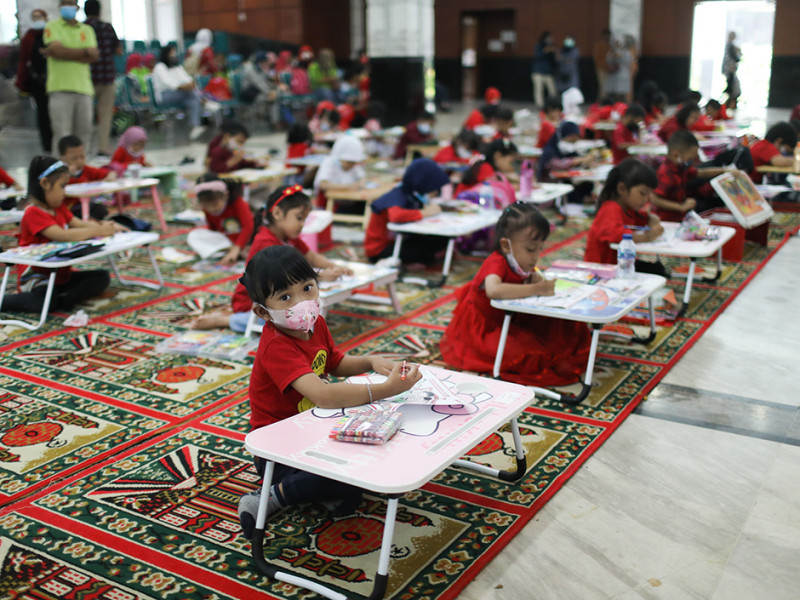 Tim Penggerak (TP) PKK Jakarta Timur menggelar final lomba mewarnai di Kantor Wali Kota Jakarta Timur, Kecamatan Cakung, Jakarta Timur, Selasa (2/8). Kegiatan ini diadakan dalam rangka Hari Keluarga Nasional dan Hari Anak Nasional tahun 2022. (Foto: Nugroho Sejati/beritajakarta.id)
