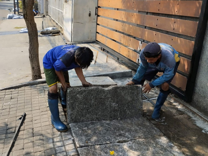 Pengurasan saluran air dilakukan oleh Dinas Sumber Daya Air (SDA) melalui Suku Dinas (Sudin) Jakarta Utara. Kegiatan ini dilakukan dari permintaan warga untuk antisipasi genangan dan banjir. Pelaksanaan kegiatan pada Juli 2022. (Foto: Dinas Sumber Daya Air Provinsi DKI Jakarta)