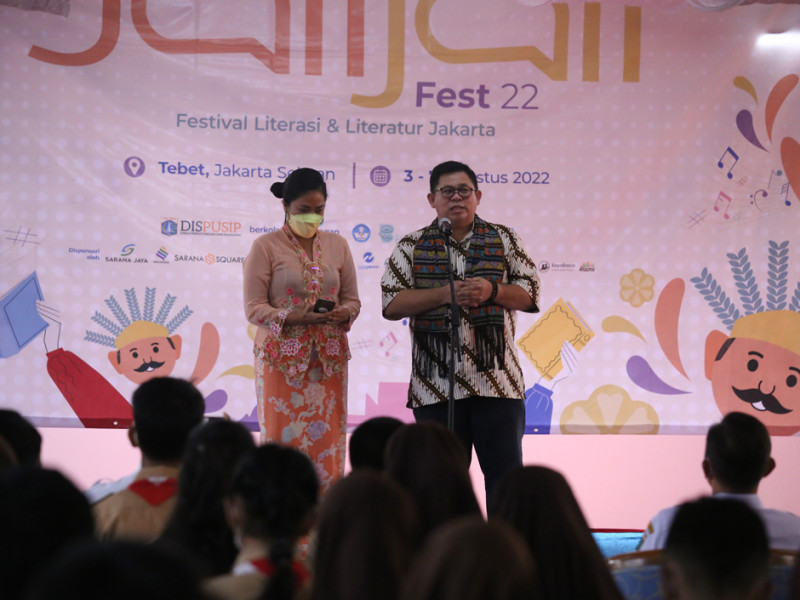 Dinas Perpustakaan dan Kearsipan (Dispusip) berkolaborasi dengan Dinas Pendidikan DKI Jakarta, Komunitas Baca di Tebet, dan Ikatan Penerbit Indonesia (IKAPI) menggelar acara Jalijali Fest 2022 di Gedung Sarana Square, Jalan Tebet Barat IV, Kelurahan Tebet Barat, Jakarta Selatan, Rabu (3/8). Festival ini menghadirkan berbagai rangkaian aktivitas literasi yang dibagi dalam lima tema. (Foto: Mochamad Tresna Suheryanto/beritajakarta.id)