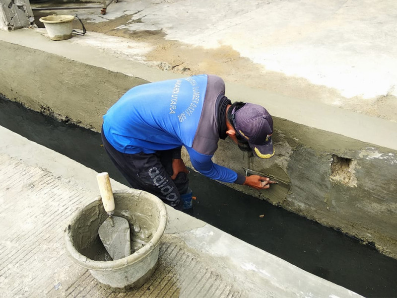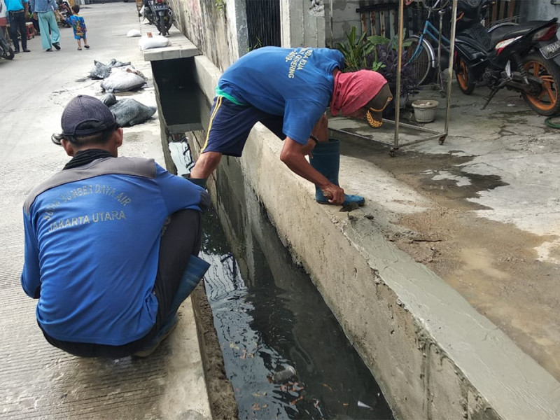 Perbaikan dan peninggian turap saluran di Jalan Salak RT 07/14, Kelurahan Lagoa, Kecamatan Koja dan Saluran di Jalan Gading VI, Kecamatan kelapa Gading, Jakarta Utara. Perbaikan saluran ini dilakukan oleh Suku Dinas Sumber Daya Air (Sudin SDA) Jakarta Utara. (Foto: Dinas Sumber Daya Air Provinsi DKI Jakarta)