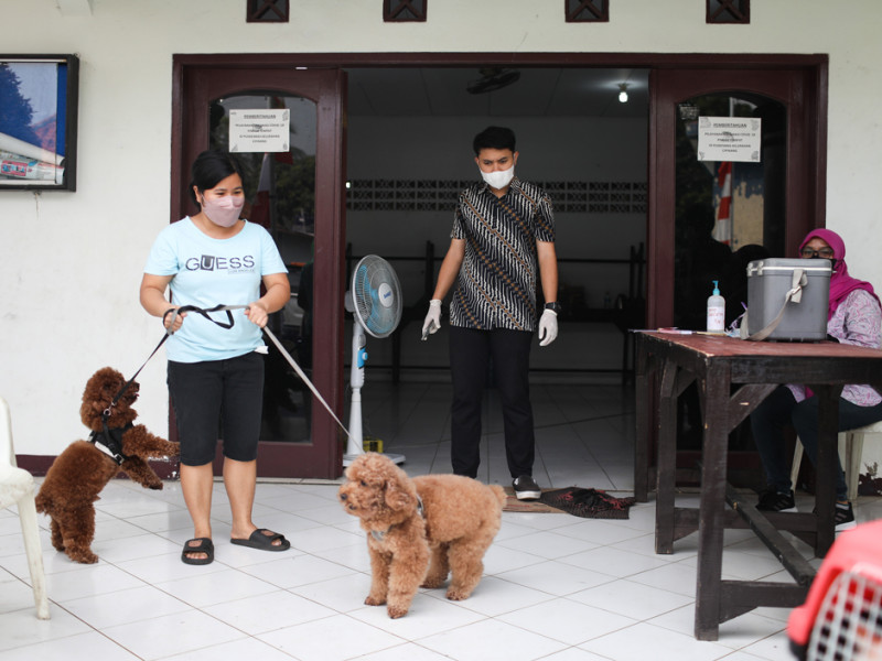 Sebanyak 38 hewan penular rabies (HPR) milik warga RW 05, Kelurahan Cipinang, Pulo Gadung, Kamis (4/8), disuntik vaksin rabies. Kegiatan yang diinisiasi Sudin Ketahanan Pangan, Kelautan dan Pertanian (KPKP) Jakarta Timur ini digelar di Sekretariat RW 05. (Foto: Nugroho Sejati/beritajakarta.id)