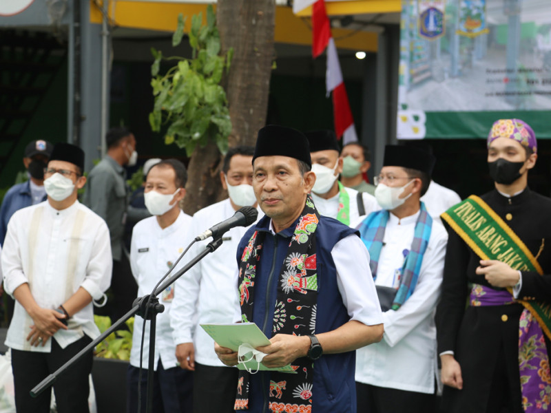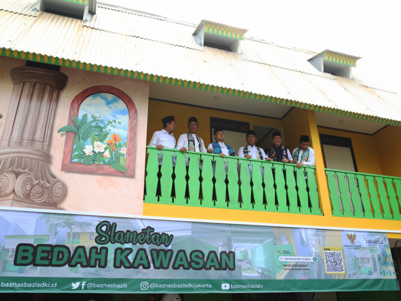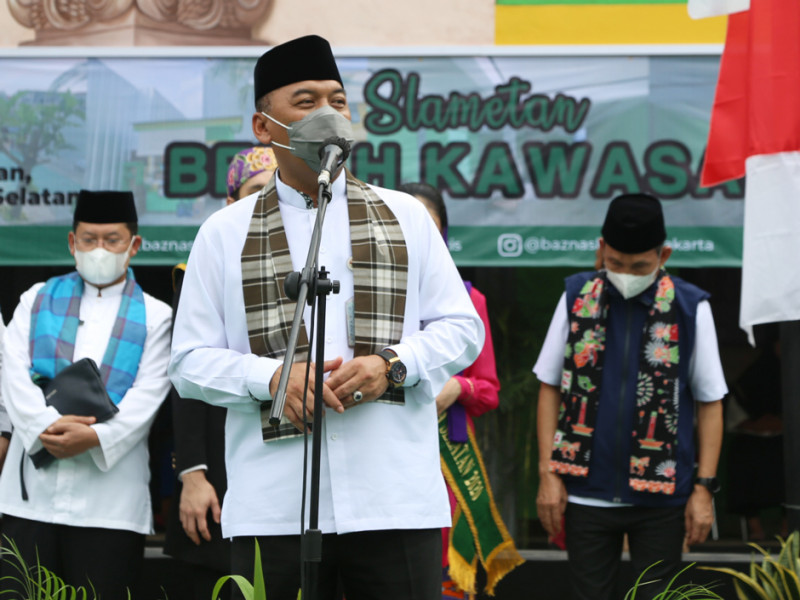 Asisten Kesejahteraan Rakyat (Askesra) Sekdaprov DKI Jakarta, Uus Kuswanto meresmikan bedah kawasan di Jalan Wijaya I, Gang Langgar, RT 11/03, Kelurahan Petogogan, Kebayoran Baru, Jakarta Selatan, Jumat (5/8). Total ada sembilan rumah yang akan direnovasi melalui program Baznas Bazis DKI Jakarta. (Foto: Reza Hapiz/beritajakarta.id)