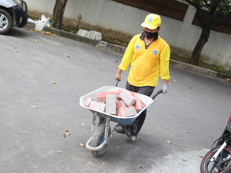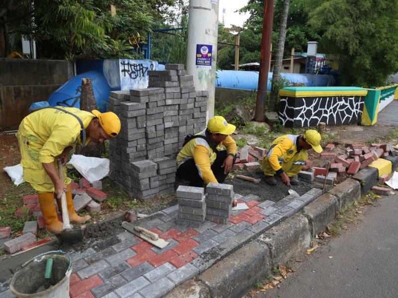 Pasukan Kuning Perbaiki Trotoar Jalan Kemang Selatan VIII