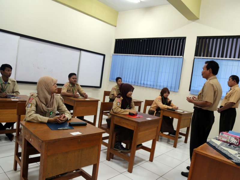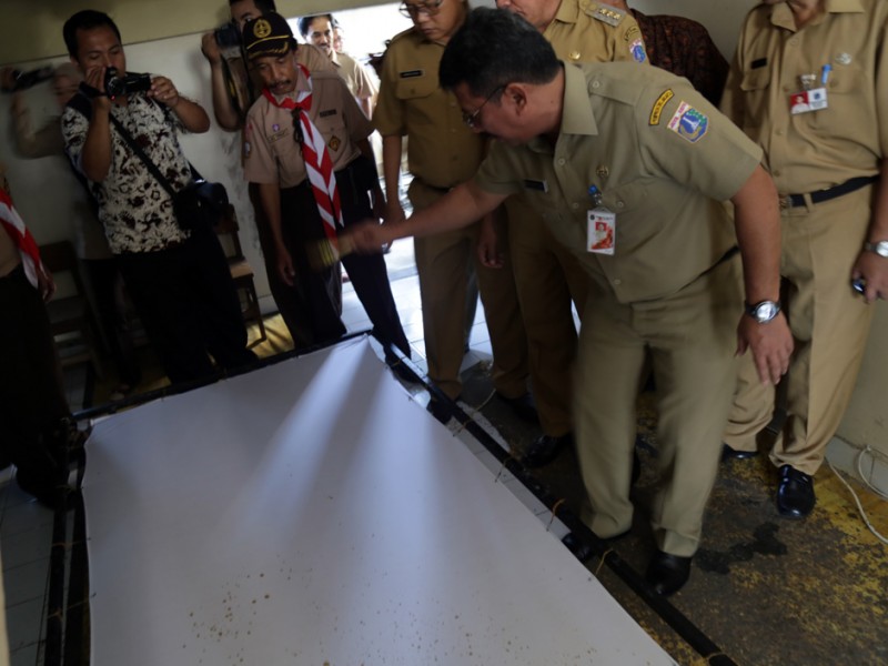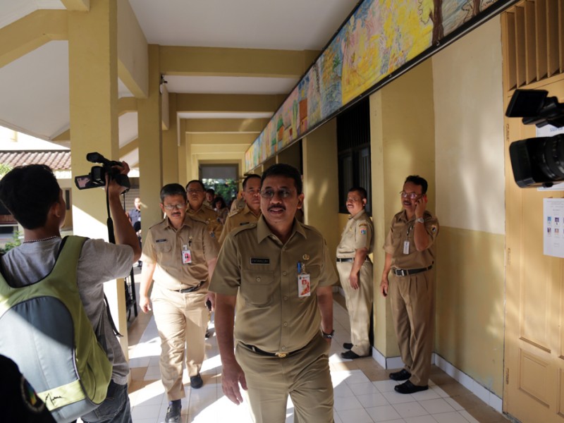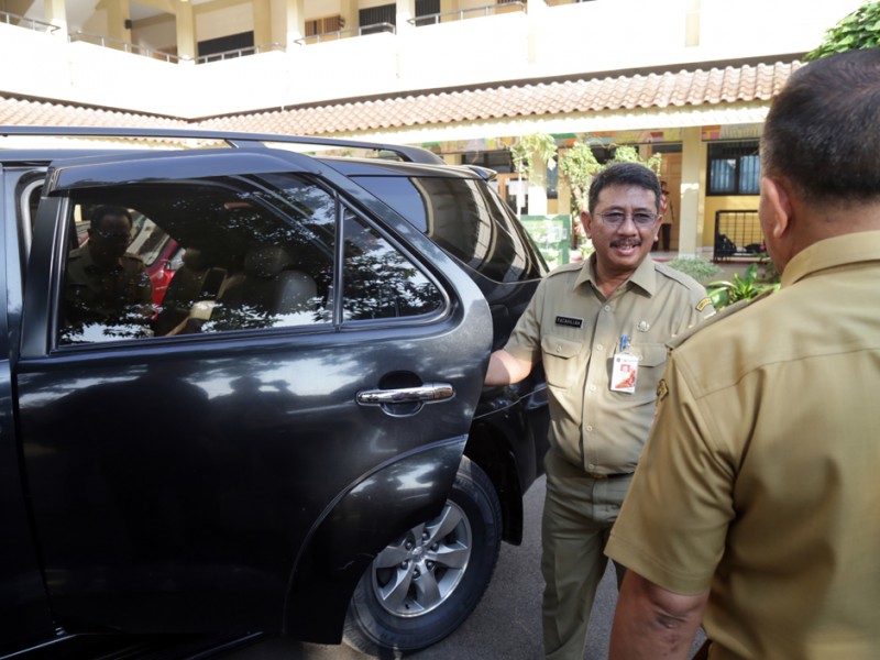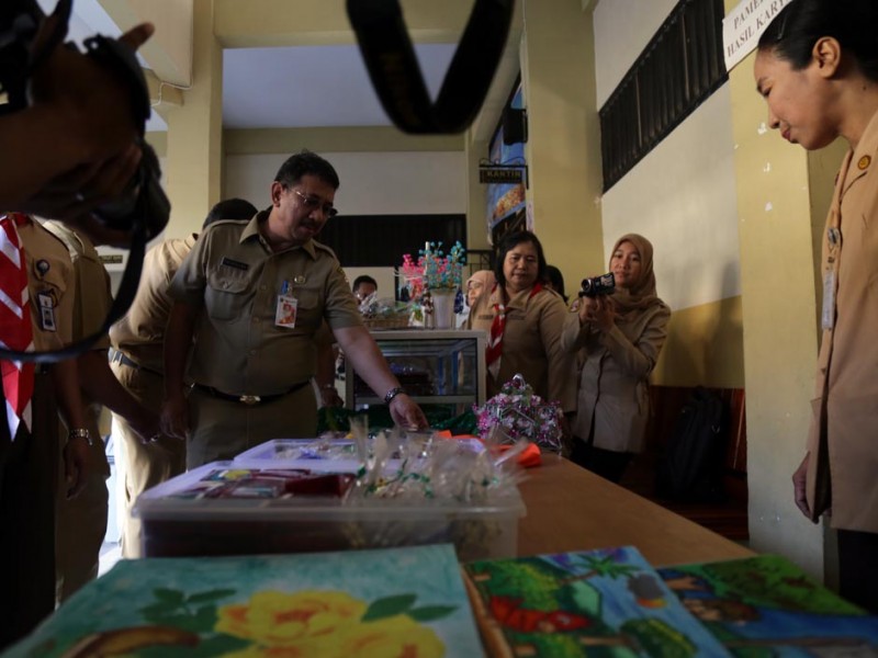 Asisten Bidang Kesejahteraan Masyarakat Sekretaris Daerah Provinsi DKI Jakarta, Fatahillah meninjau pelaksanaan UN. Peninjauan dilakukan di Sekolah Menengah Pertama Luara Biasa (SMP LB) 7 Jatinegara, Jakarta Timur, Rabu (06/05/2015). Sebanyak 6 orang muris berkebutuhan khusus mengikuti UN di sekolah ini. Dalam kunjungannya Fatahillah juga meninjau ruang pameran hasil karya para pesereta didik berkebutuhan khusus. (Foto : Reza/Beritajakarta.com)