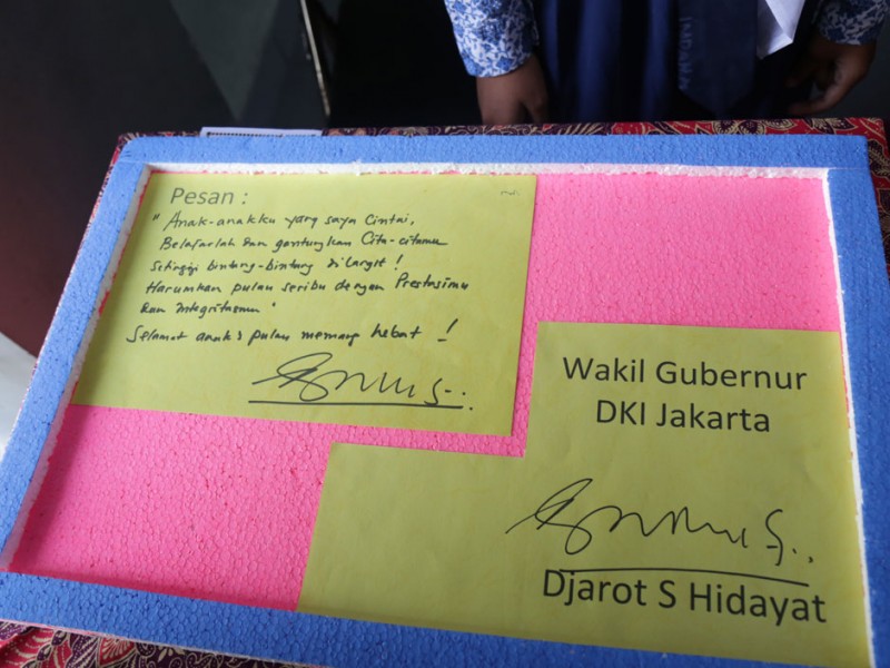 Wakil Gubernur DKI Jakarta, Djarot Saiful Hidayat meninjau pelaksanaan Ujian Nasional (UN) di wilayah Kabupaten Administrasi Kepulauan Seribu, Kamis (07/05/2015). Peninjauan dilakukan di SMP Negeri 24, Kelurahan Pulau Tidung, Kecamatan Kepulauan Seribu Selatan.(Foto : Reza/Beritajakarta.com)