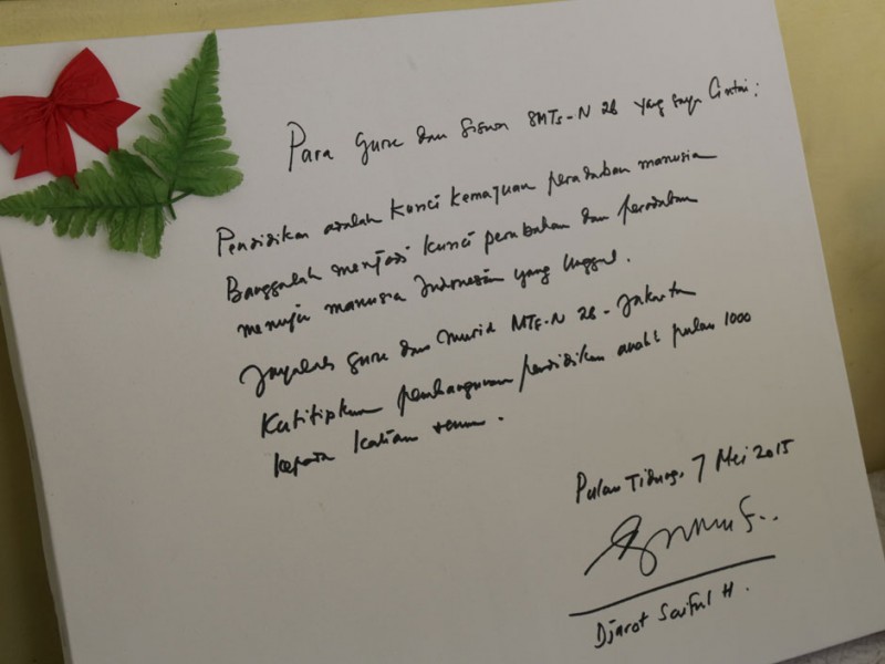 Usai melakukan peninjauan Ujian Nasional di SMP Negeri 24, Wakil Gubernur DKI Jakarta Djarot Saiful Hidayat melanjutkan peninjauan pelaksanaan UN di Madrasah Tsanawiyah Negeri 26, Kelurahan Pulau Tidung, Kecamatan Kepulauan Seribu Selatan, Kabupaten Administrasi Kepulauan Seribu, Kamis (07/05/2015)..(Foto : Reza/Beritajakarta.com)