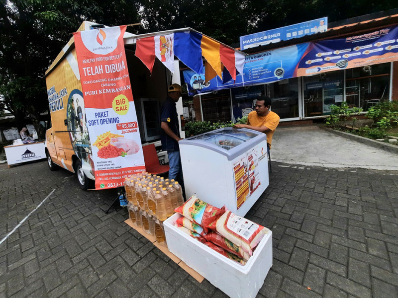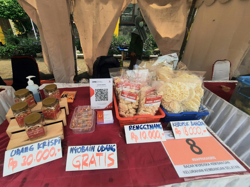 Sebanyak 30 pelaku Usaha Mikro, Kecil dan Menengah (UMKM) binaan atau Jakpreneur mengikuti kegiatan Bazar Merdeka di halaman Masjid Al Hurriyyah, Jalan Kembang Mulya, Puri Indah, Komplek SPS Blok D, RT 04/03, Kelurahan Kembangan Selatan, Kembangan, Jakarta Barat, Jumat (12/8). Bazar ini menampilkan berbagai macam produk kuliner, minuman, kerajinan tangan dan fesyen. (Foto: Reza Hapiz/beritajakarta.id)
