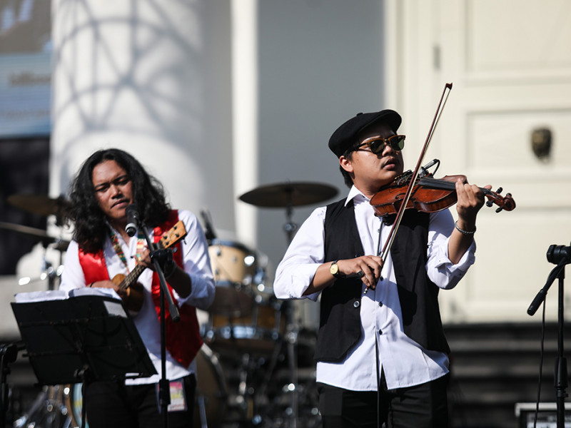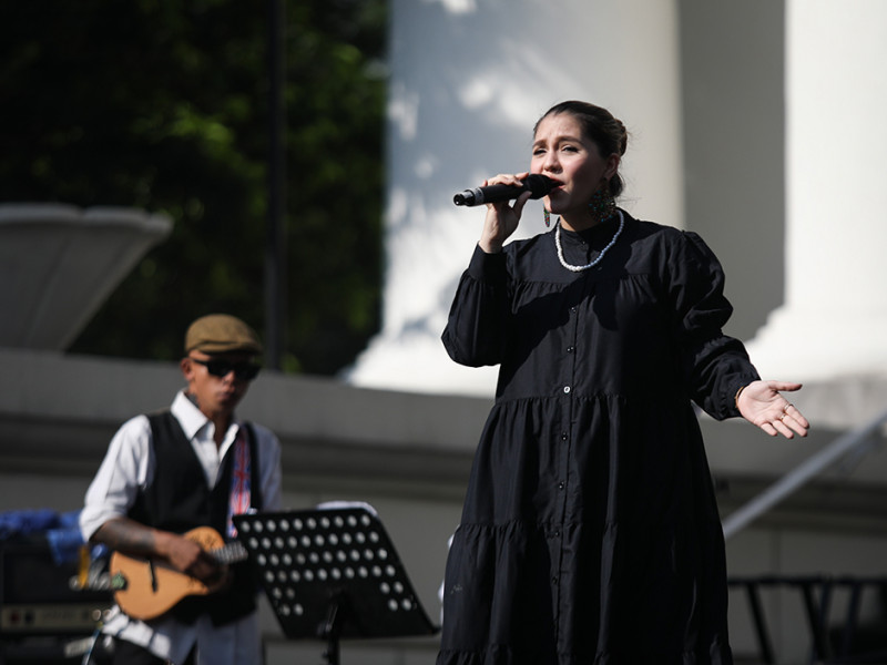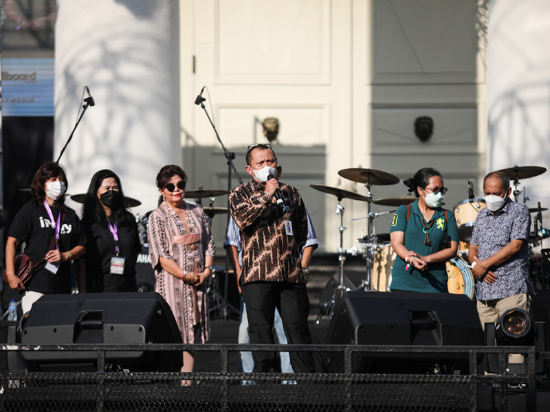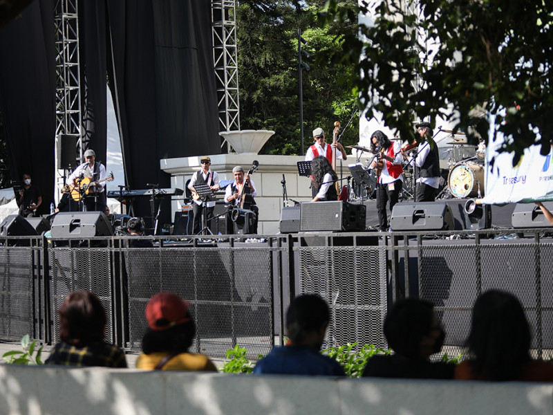 Grup musik Krontjong Toegoe beraksi sebagai penampil perdana Jazz Goes to Immanuel (JGTI) 2022 di Halaman GPIB Immanuel, Gambir, Jakarta Pusat, Jumat (12/8). JGTI digelar dalam rangka menyambut HUT ke-77 Kemerdekaan Republik Indonesia. Acara berlangsung selama tiga hari, yakni pada 12, 13, dan 14 Agustus 2022. (Foto: Nugroho Sejati/beritajakarta.id)