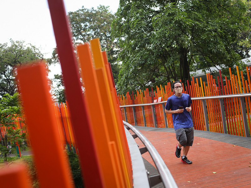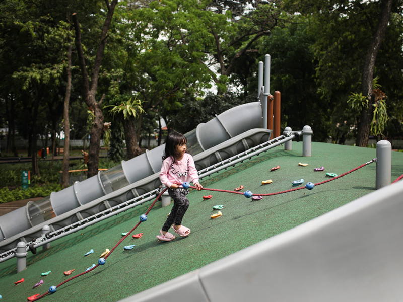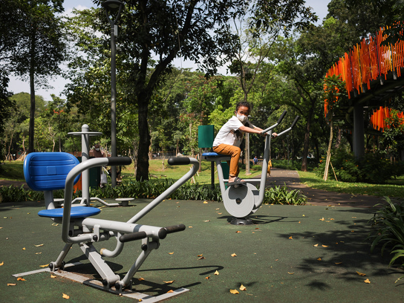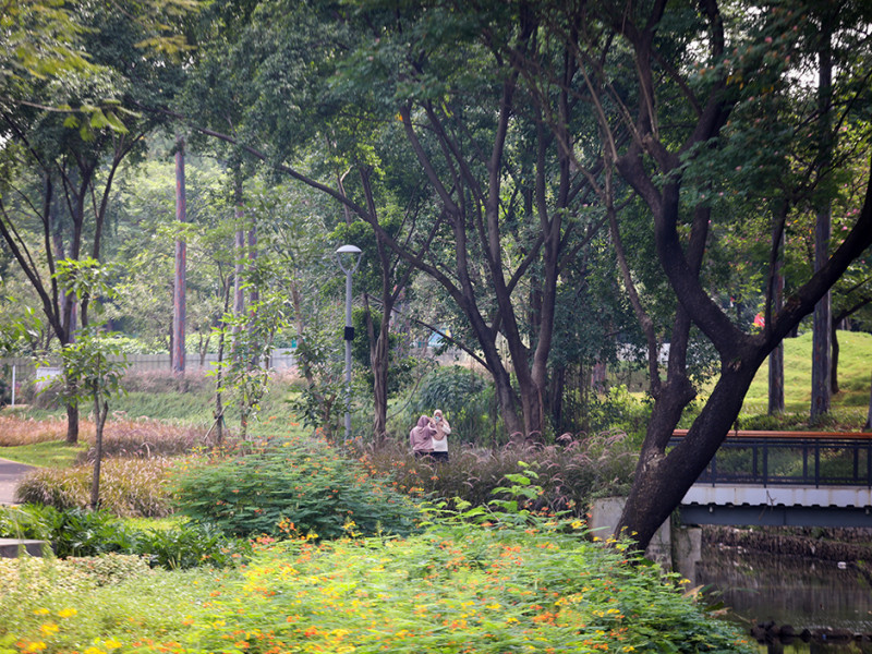 Tebet Eco Park di Jakarta Selatan kembali dibuka untuk umum setelah ditutup sementara guna perawatan dan renovasi sejumlah titik. Masyarakat yang ingin berkunjung ke taman ini wajib menjadwalkan kedatangannya terlebih dahulu melalui aplikasi JAKI. (Foto: Nugroho Sejati/beritajakarta.id)