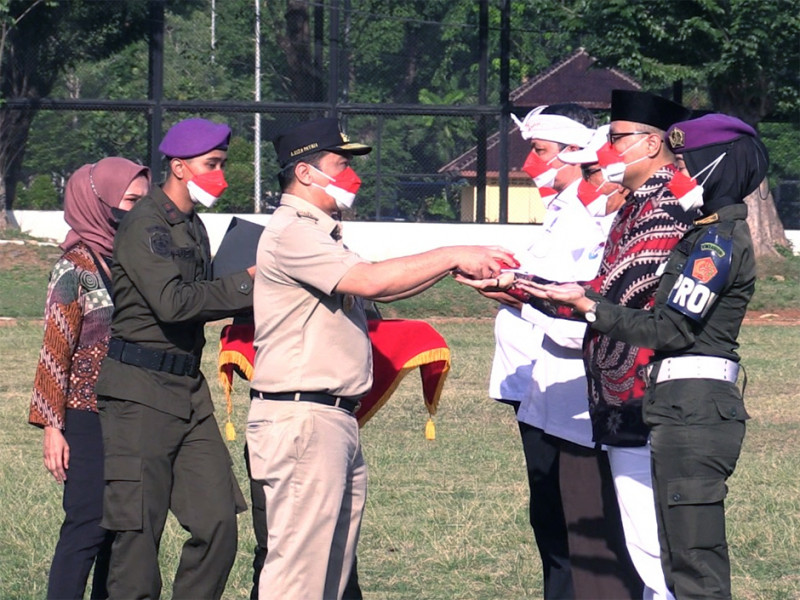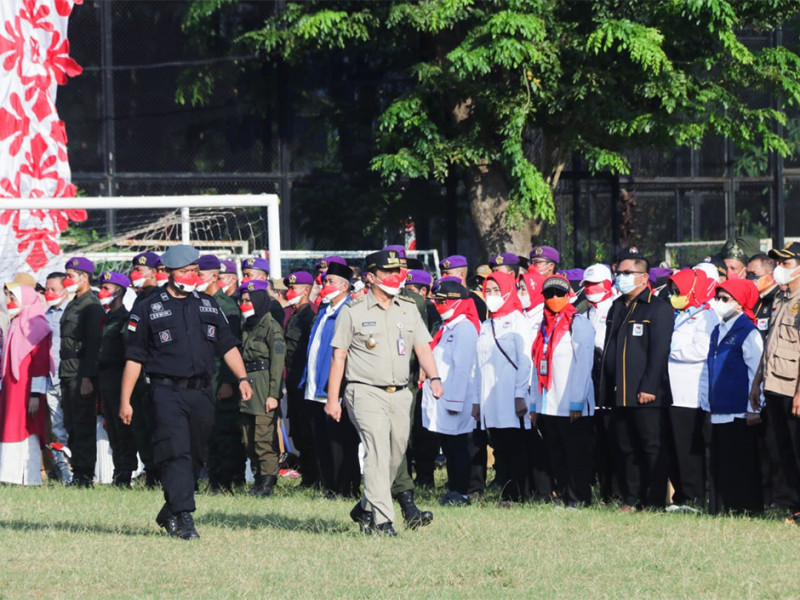 Wakil Gubernur DKI Jakarta, Ahmad Riza Patria memimpin Apel Akbar Kebangsaan Tahun 2022 , di Lapangan Banteng, Sawah Besar, Jakarta Pusat, Senin (15/8). Apel dilaksanakan dalam rangka menyukseskan Gerakan Pembagian 10 Juta Bendera Merah Putih yang dicanangkan Pemerintah Pusat melalui Kementerian Dalam Negeri (Kemendagri). (Foto: Mochamad Tresna Suheryanto/beritajakarta.id)