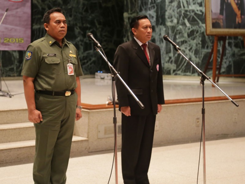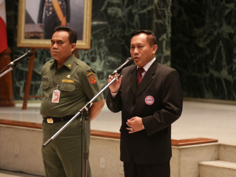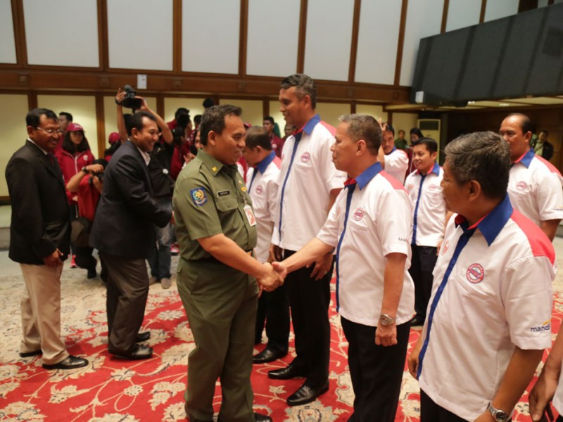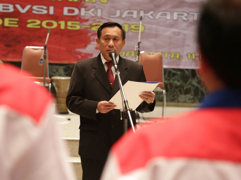 Sekretaris Daerah Provinsi DKI Jakarta, Saefullah menghadiri sekaligus memberi arahan pelantikan pengurus Persatuan Bola Voli Seluruh Indonesia (PBVSI) Provinsi DKI Jakarta Masa Bhakti Tahun 2015- 2019. Porsesi pelantikan dilakukan di Balaikota DKI Jakarta, Senin (11/05/2015).(Foto: Reza / Beritajakarta.com)