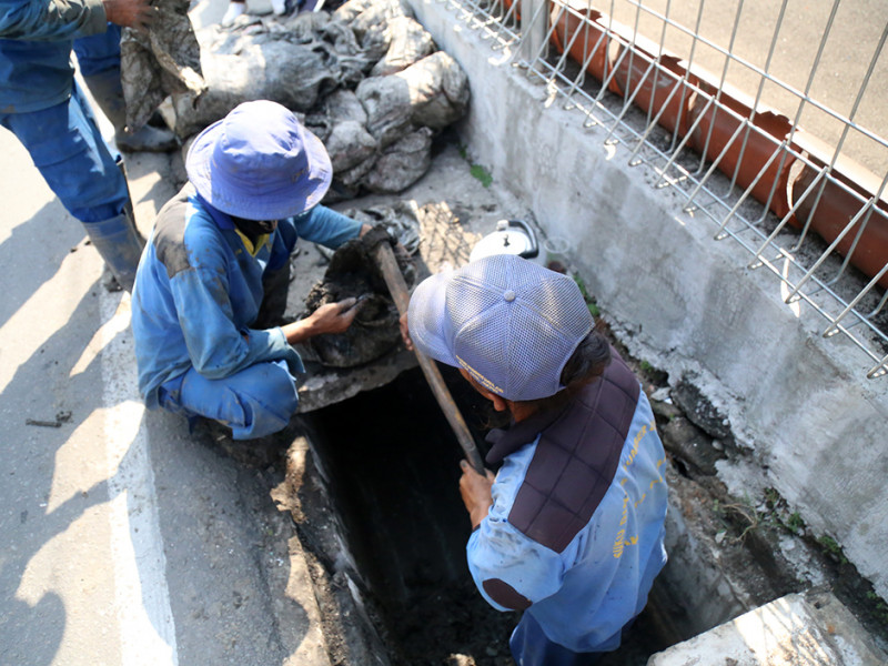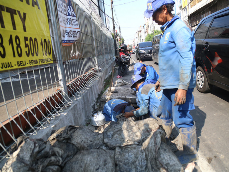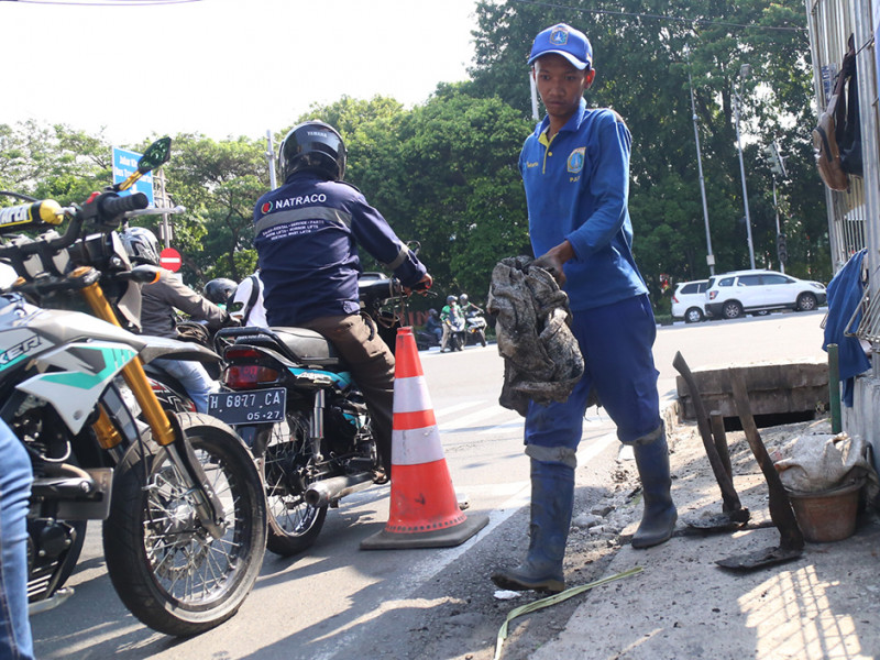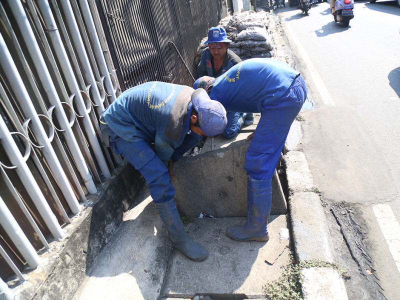 Satuan Pelaksana Sumber Daya Air (Satpel SDA) Kecamatan Kemayoran, Jakarta Pusat, Kamis (18/8) melakukan pengurasan saluran di Jalan Gunung Sahari III, Kelurahan Gunung Sahari Utara. Pengurasan dilakukan dalam rangka normalisasi saluran. (Foto: Mochamad Tresna Suheryanto/beritajakarta.id)