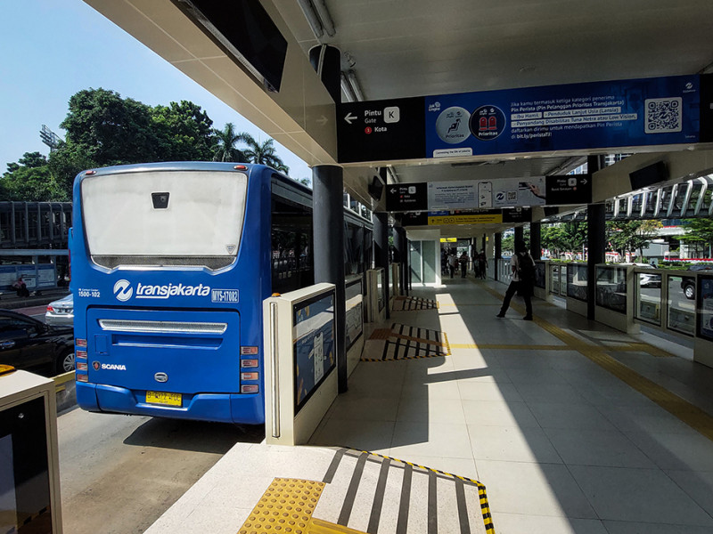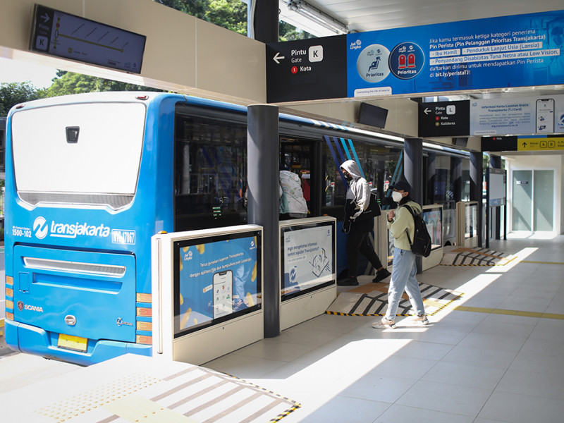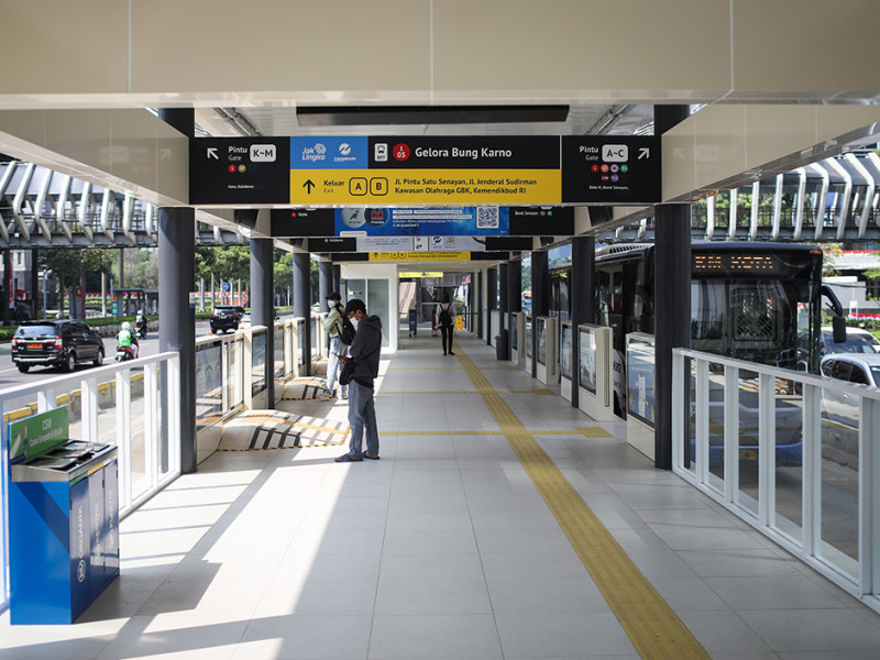 PT Transportasi Jakarta (Transjakarta) kembali mengoperasikan Halte Gelora Bung Karno (GBK) setelah rampung direvitalisasi. Halte GBK merupakan salah satu dari 46 halte Transjakarta yang direvitalisasi pada tahun 2022 sebagai upaya meningkatkan fasilitas dan layanan bagi pelanggan. (Foto: Nugroho Sejati/beritajakarta.id)