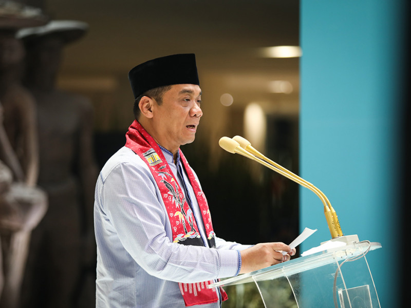Wakil Gubernur DKI Jakarta, Ahmad Riza Patria, menghadiri sekaligus memberikan sambutan dalam peluncuran Program Sehat, Inovatif, dan Aman Pakai (S.I.A.P) QRIS di Sarinah, Menteng, Jakarta Pusat, Jumat (19/8). Program ini untuk mendorong pelaku UMKM di Sarinah untuk melayani pembayaran melalui QRIS (QR Code Indonesian Standard). (Foto: Nugroho Sejati/beritajakarta.id)