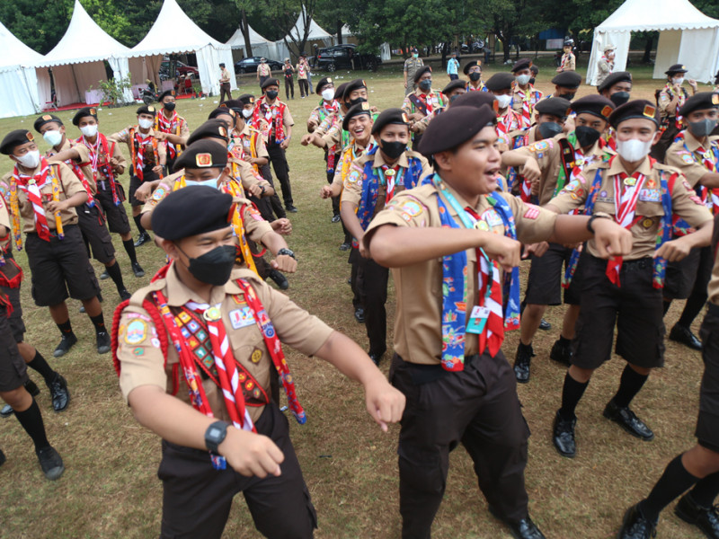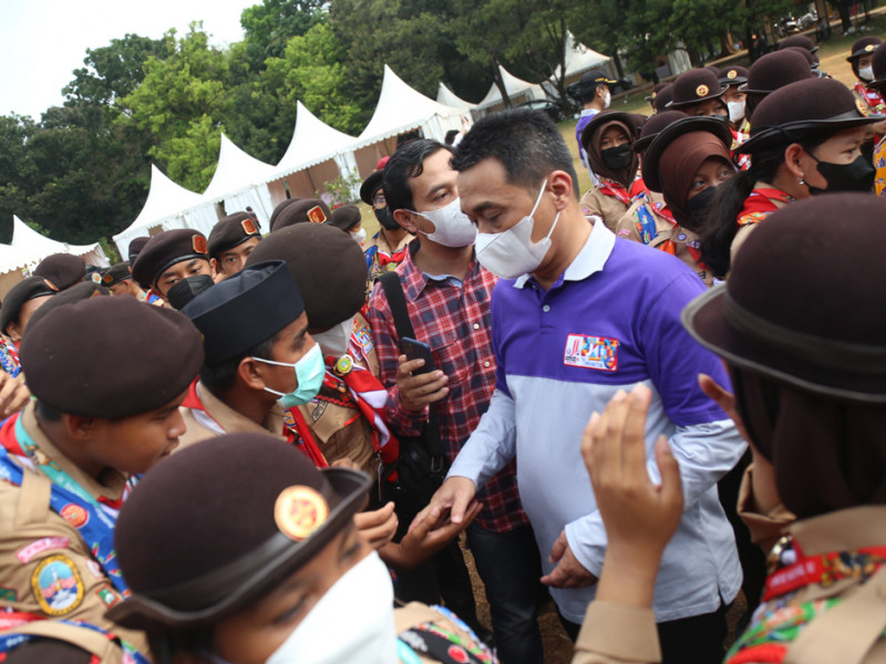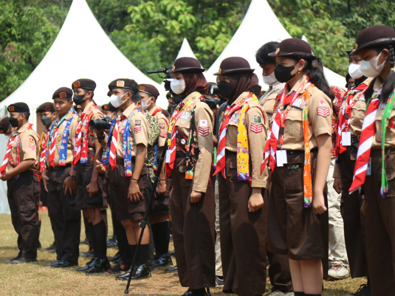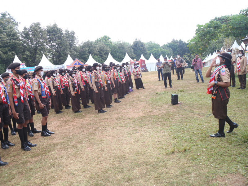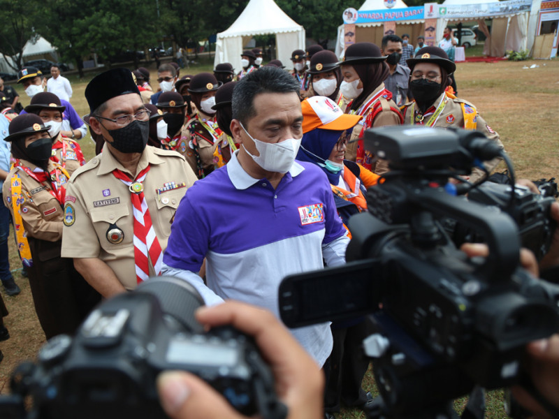 Wakil Gubernur DKI Jakarta, Ahmad Riza Patria mengunjungi kontingen DKI Jakarta di Jambore Nasional (Jamnas) Pramuka XI, Buperta Cibubur, Jakarta Timur, Sabtu (20/8). Dalam kunjungannya Ariza memberikan motivasi kepada 122 peserta asal DKI Jakarta. (Foto: Mochamad Tresna Suheryanto/beritajakarta.id)