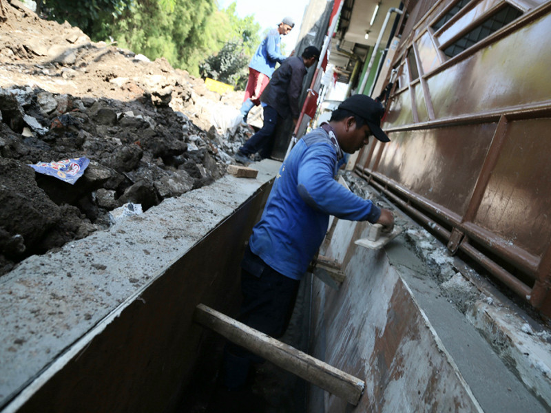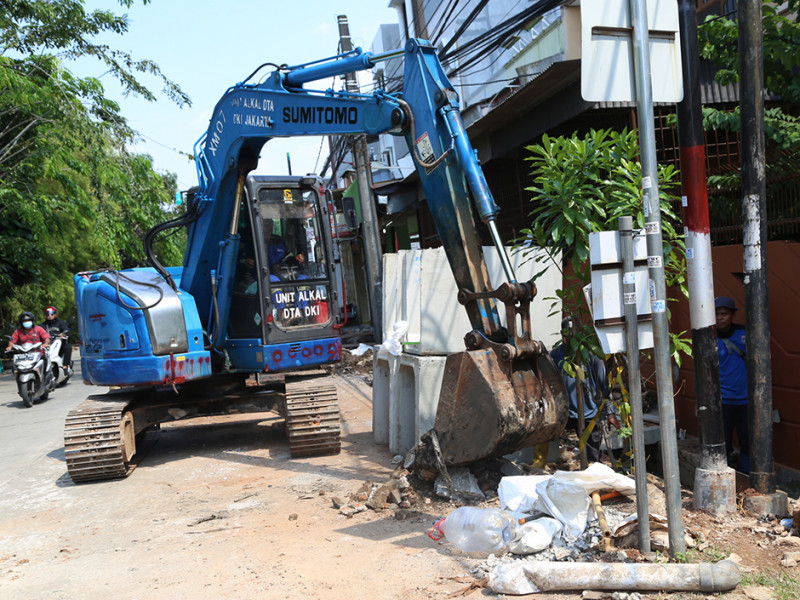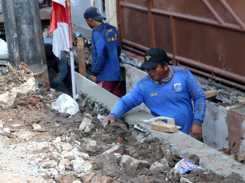 Suku Dinas Sumber Daya Air Jakarta Barat memperbaiki saluran di Jalan Taman Cosmos RT 06/07, Kelurahan Kedoya Utara, Kecamatan Kebon Jeruk. Perbaikan ini bertujuan mengoptimalkan fungsi saluran sehingga dapat mencegah terjadinya genangan di wilayah tersebut. (Foto: Reza Hapiz/beritajakarta.id)