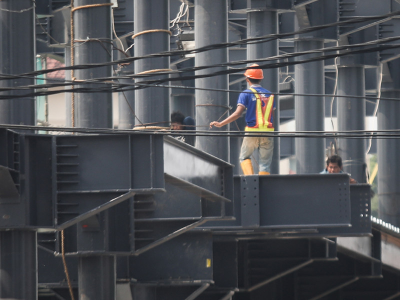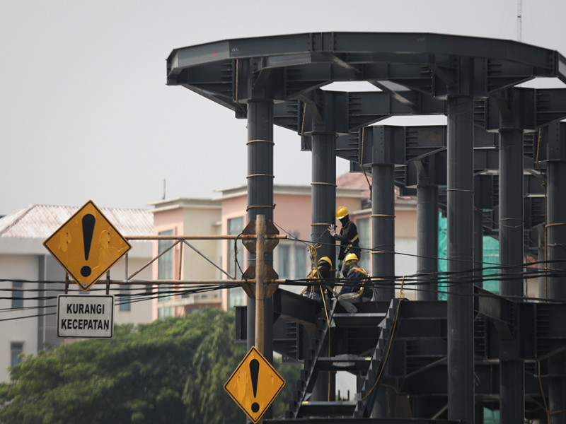 Pekerja mengerjakan revitalisasi Halte Transjakarta Kebon Pala, Kecamatan Jatinegara, Jakarta Timur, Rabu (24/8). Halte Transjakarta Kebon Pala akan memiliki kapasitas yang lebih besar serta dilengkapi sejumlah fasilitas untuk menambah kenyaman bagi pelanggan. (Foto: Nugroho Sejati/beritajakarta.id)