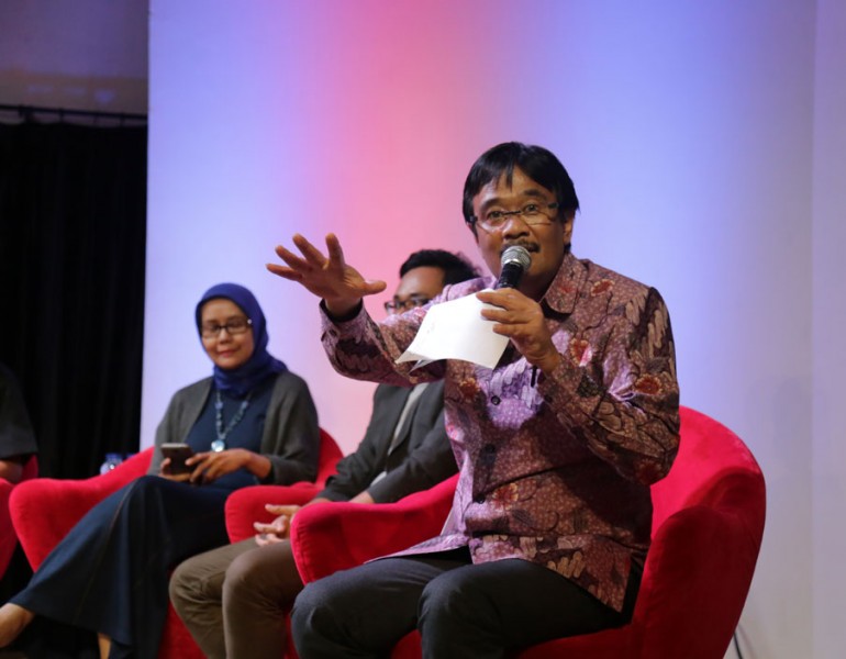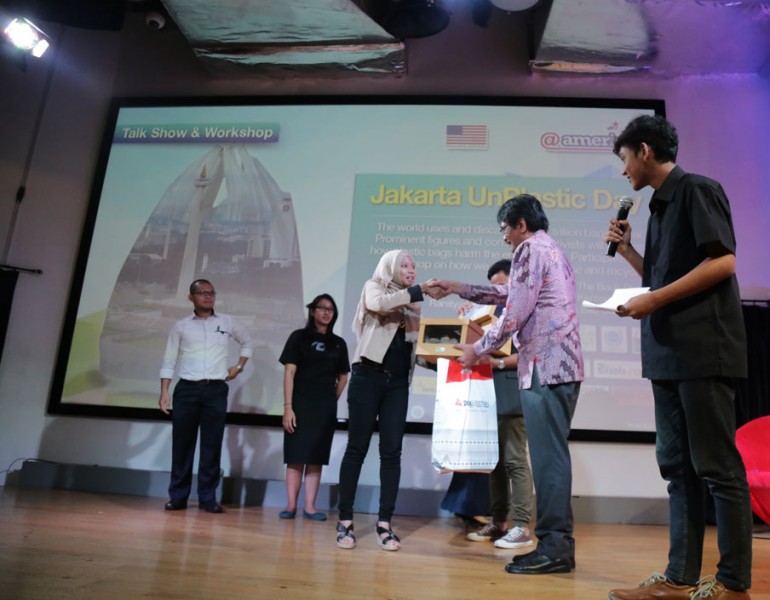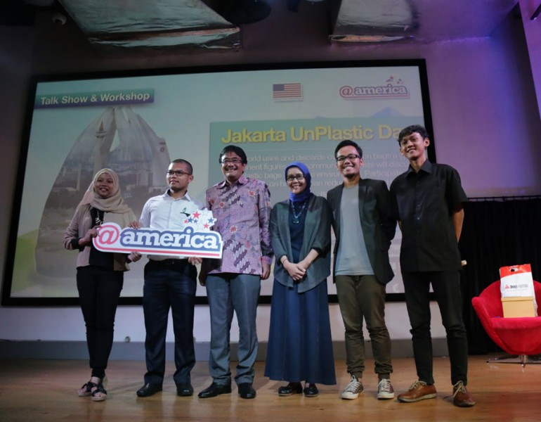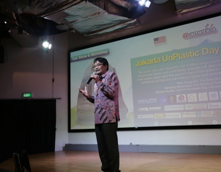 Wakil Gubernur DKI Jakarta, Djarot Saiful Hidayat bertindak sebagai pembicara kegiatan Jakarta Un-Plastic Day Tahun 2015, di salah satu pusat perbelanjaan, Jalan Jenderal Sudirman, Jakarta Selatan (12/05/2015). Dalam kesempatan tersebut Djarot mengingatkan tentang bahayanya sampah plastik.(Foto: Reza / Beritajakarta.com)