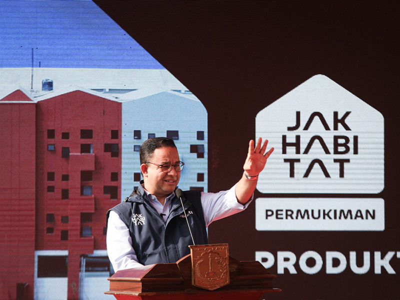 Gubernur DKI Jakarta, Anies Baswedan meresmikan Kampung Susun Produktif Tumbuh Cakung, Jatinegara, Jakarta Timur, Kamis (25/8). Kampung Susun Produktif Tumbuh Cakung adalah hunian yang disediakan Pemprov DKI Jakarta bagi warga Bukit Duri yang terdampak peningkatan kapasitas Kali Ciliwung pada tahun 2016. (Foto: Nugroho Sejati/beritajakarta.id)
