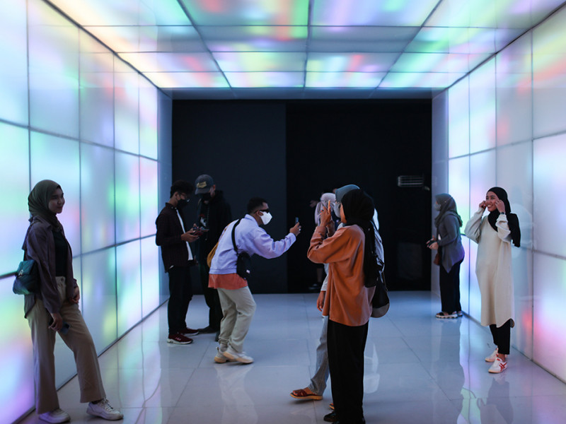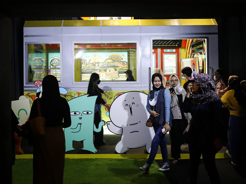 Dinas Pariwisata dan Ekonomi Kreatif (Disparekraf) DKI Jakarta menggelar pameran seni instalasi Pop Art Jakarta 2022 di Mal Senayan Park (SPARK), Kecamatan Tanah Abang, Jakarta Pusat. Pameran tersebut menampilkan sejumlah instalasi kreatif karya intelektual seniman dalam negeri. (Foto: Nugroho Sejati/beritajakarta.id)