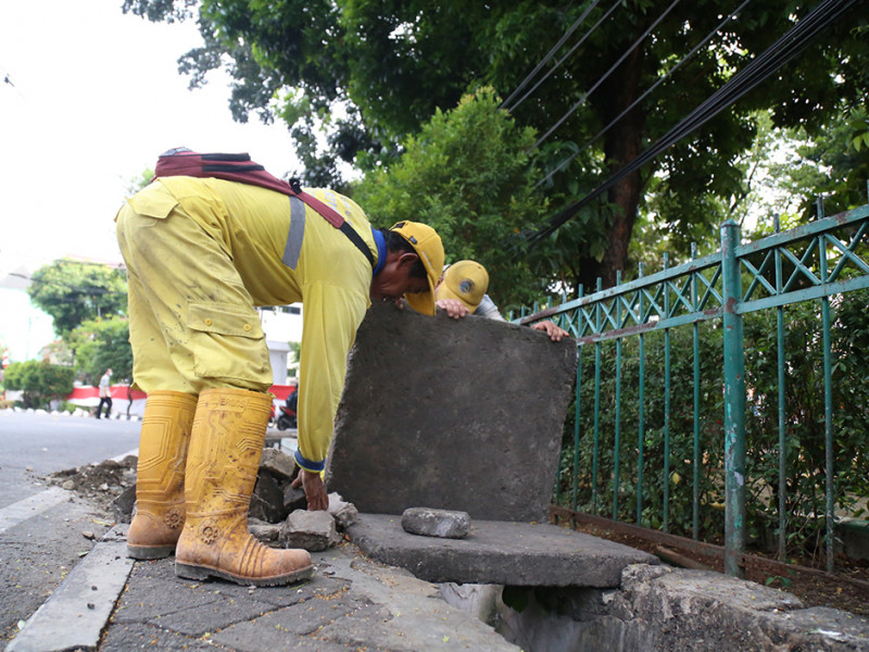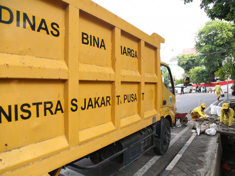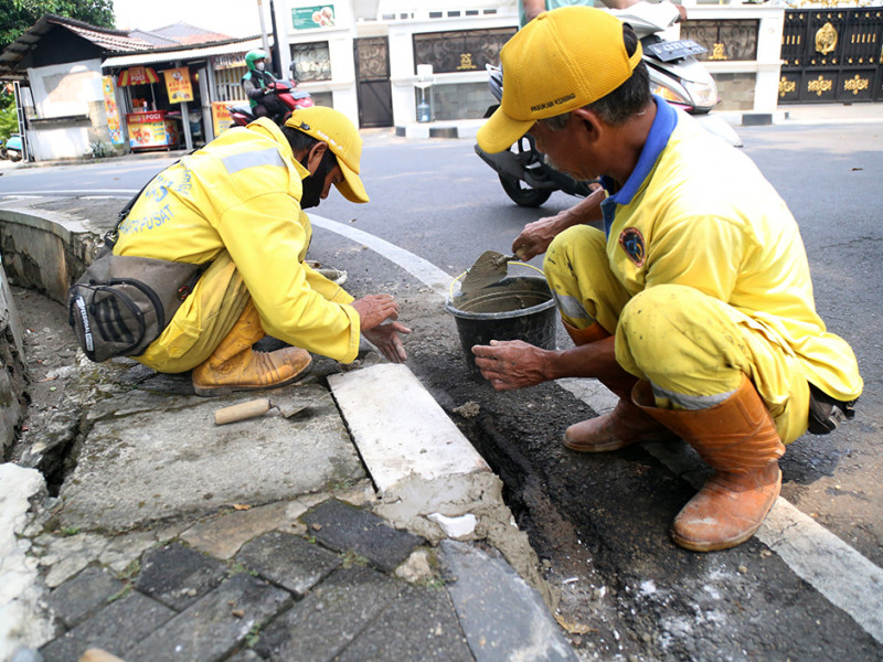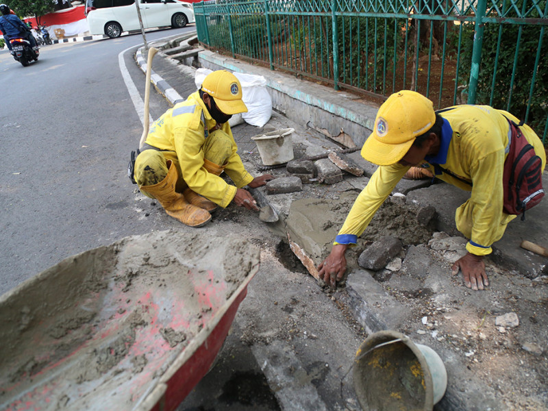 Satuan Pelaksana (Satpel) Bina Marga Kecamatan Menteng, Jakarta Pusat melakukan perbaikan trotoar di Jalan Taman Matraman Timur, Kelurahan Pegangsaan. Perbaikan dilakukan lantaran kondisi di sejumlah titik trotoar mulai ambles termakan usia. (Foto: Mochamad Tresna Suheryanto.beritajakarta.id)