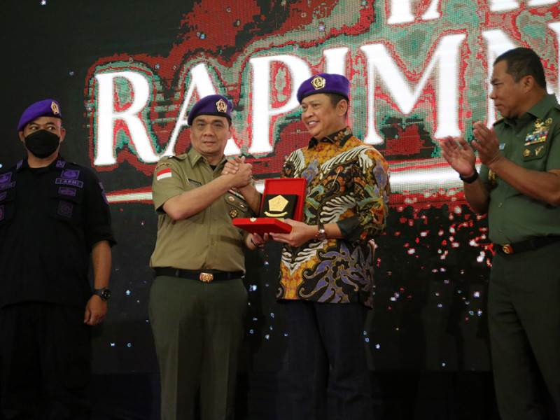 Provinsi DKI Jakarta menjadi tuan rumah pelaksanaan Rapat Pimpinan Nasional Ikatan Alumni Resimen Mahasiswa Indonesia (Rapimnas IARMI) Tahun 2022. Rapat bertema \"Merajut Kebhinekaan, Menjaga Persatuan dan Kesatuan Bangsa\" tersebut dibuka secara resmi oleh Ketua MPR RI, Bambang Soesatyo; Sekjen DPN IARMI, Ahmad Riza Patria; serta Kepala Staf Umum Tentara Nasional Indonesia (TNI), Letjen Eko Margiyono di Grand Cempaka Business Hotel, Jalan Letjen Suprapto, Cempaka Putih, Jakarta Pusat, Jumat (26/8). (Foto: Mochamad Tresna Suheryanto/beritajakarta.id)